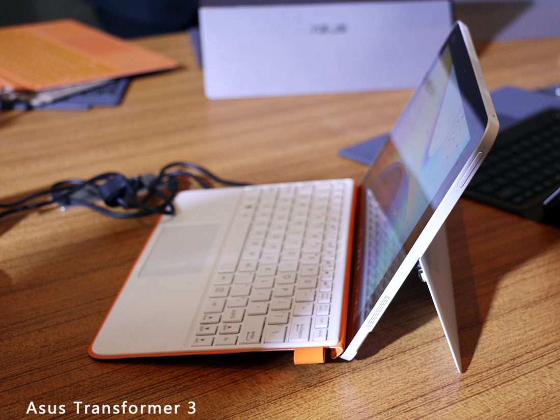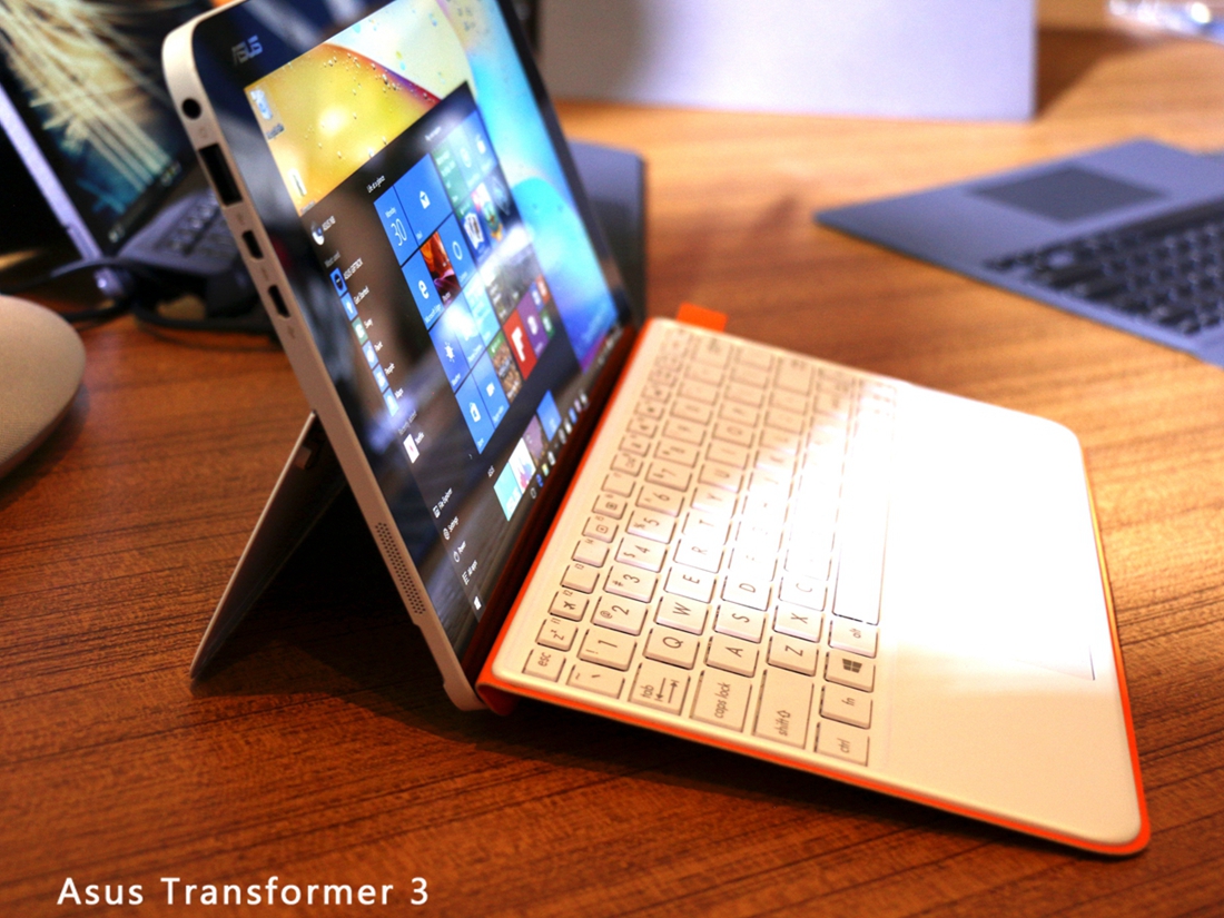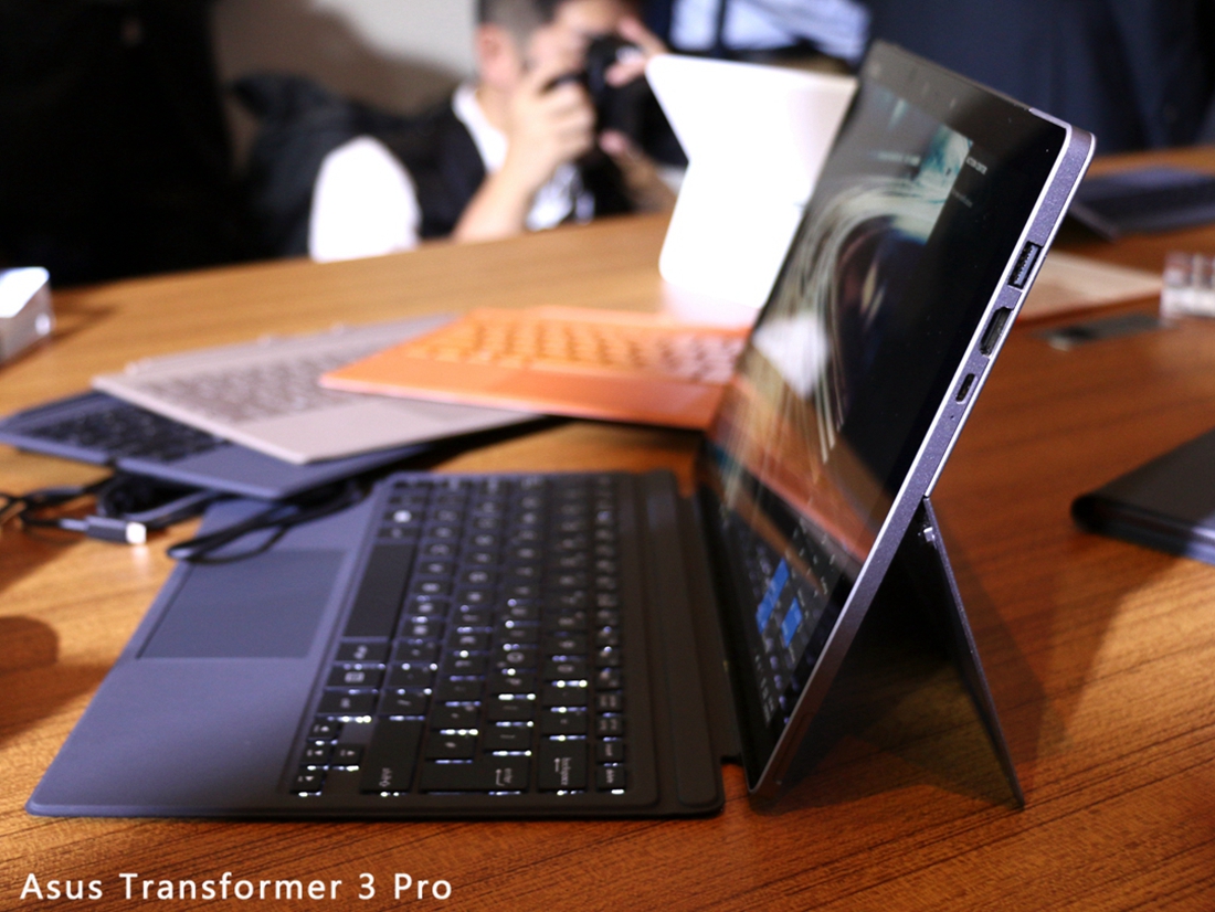 Transformer 3 Pro是一款标准的二合一笔记本产品,键盘可拆卸,并且提供了黑色、棕色、橙色等颜色可选。Transformer 3 Pro厚8.35mm,采用12.6英寸2880 x 1920 分辨率屏幕,搭载Skylake Core i5/i7 处理器、最多1TB PCI-E x4 SSD、LPDDR3内存。预计售价999美元起。