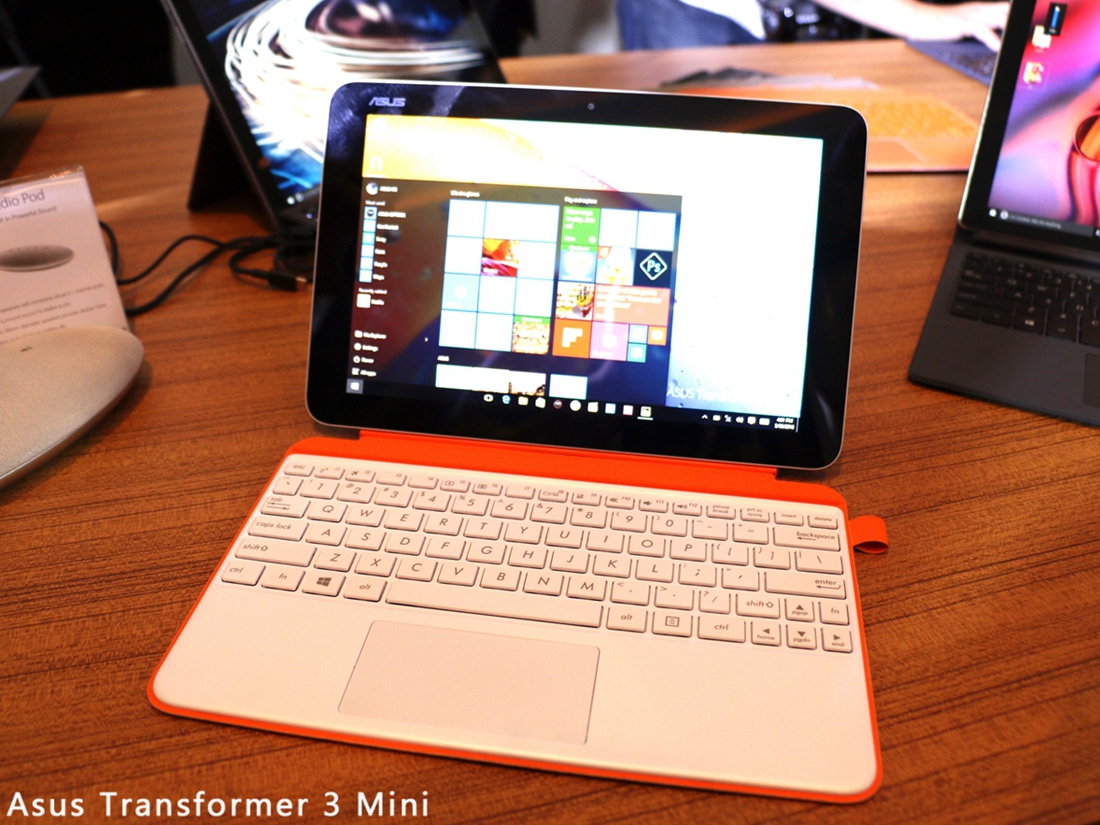 Transformer Mini采用10.1英寸屏幕,机身厚度8.2mm,同样配备可拆卸键盘,单机重量仅为530g,连上键盘为790g。有灰/白 双色可选,键盘 橙/灰/褐/绿 四色可选,将于夏季发售。