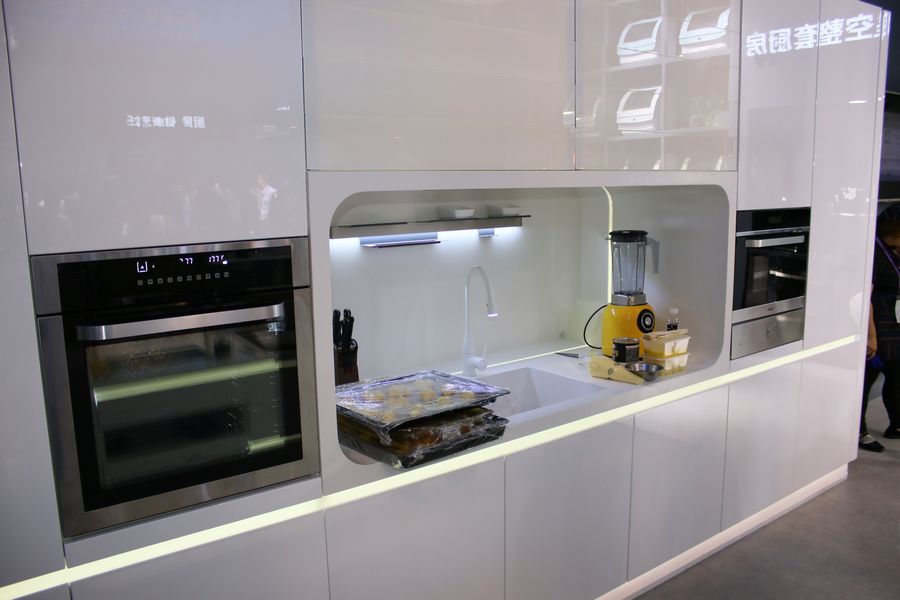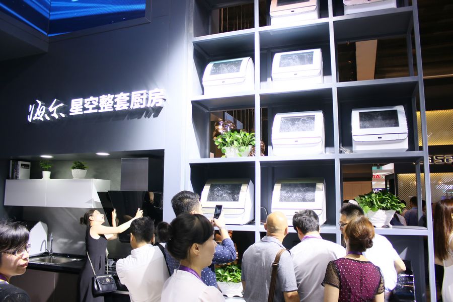 海尔星空整套厨房重点就在于“整套”,细心的观众看到海尔展区内全是洗碗机、吸油烟机、灶具、热水器等厨卫电器,而海尔起家的冰箱、洗衣机并不多见。难道海尔要发力厨电市场了么?当日下午,海尔就举办了主题是“融贯中西品味世界”的海尔厨电产业全球化战略暨新品发布会,明确表示,海尔要做全球厨电市场第一名。