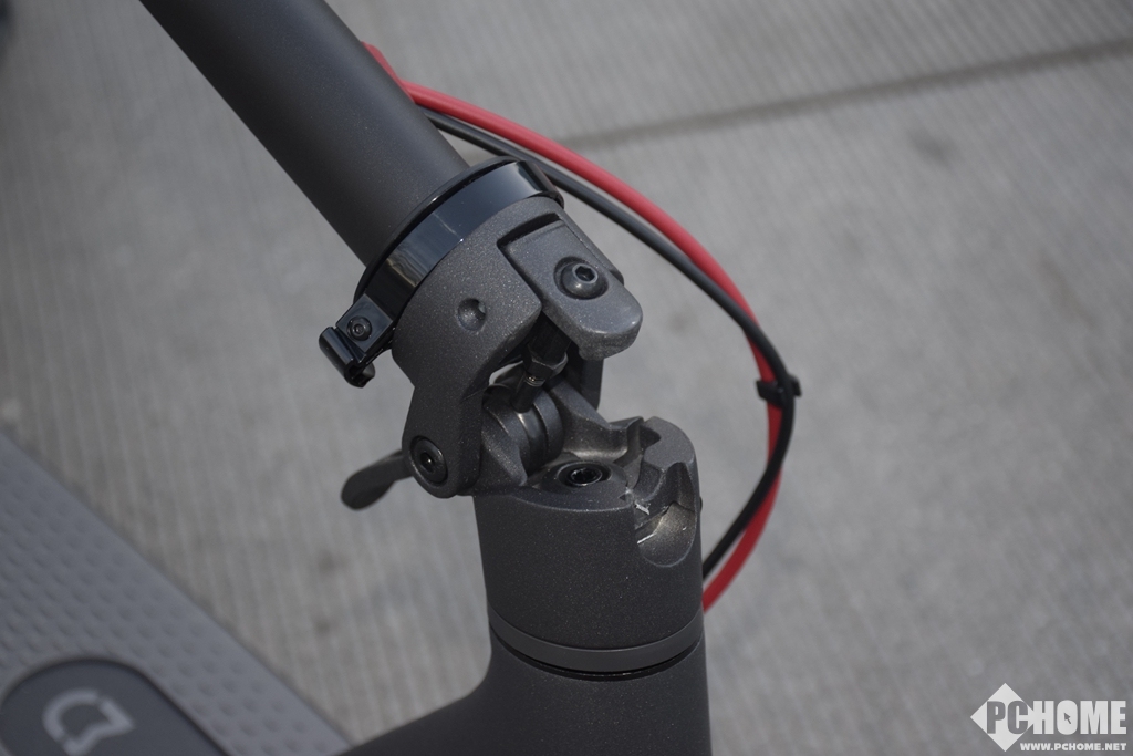 米家电动滑板车采用极简几何设计,主体框架为航空级铝合金,线材也大多管内走线,看起来结实耐用。