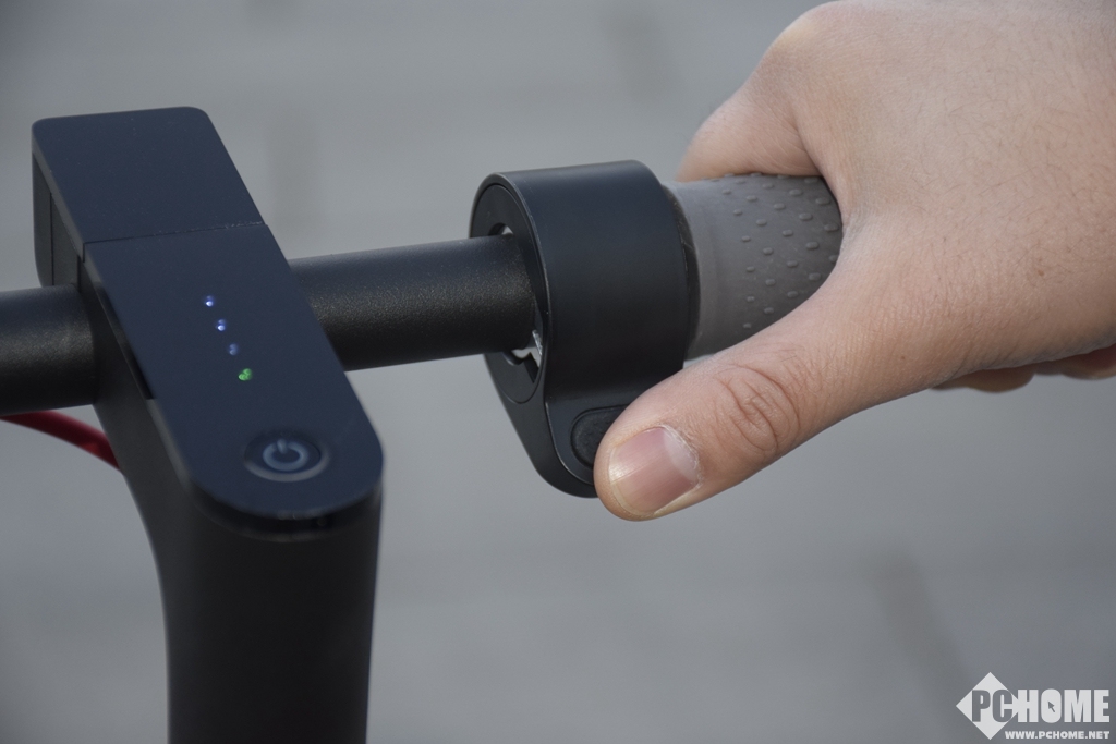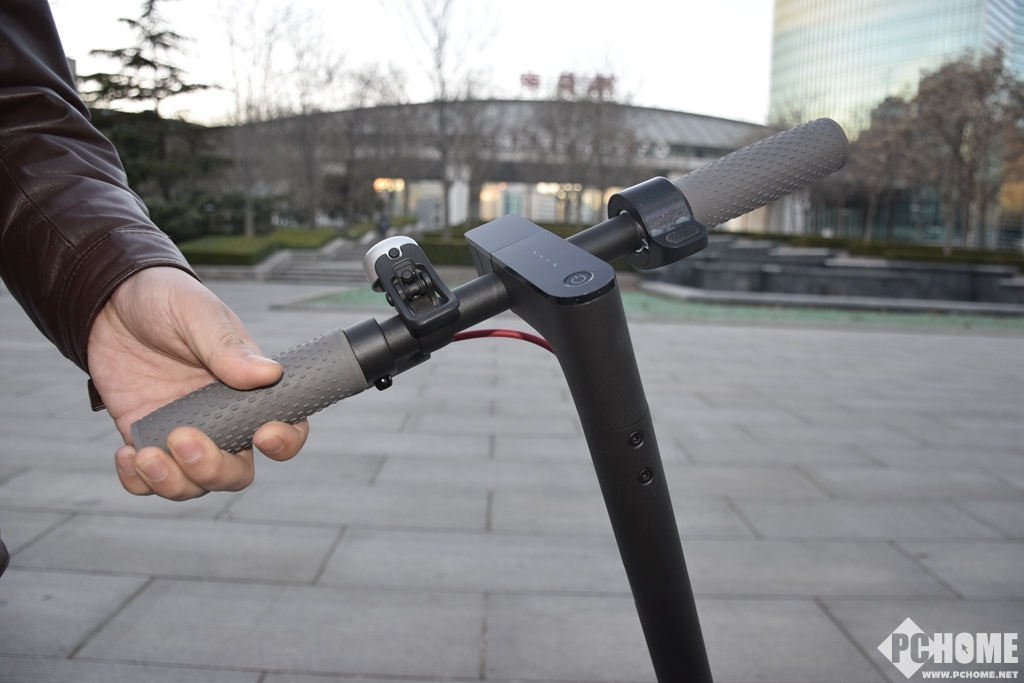 小米米家电动滑板车的车把宽度为43cm,成年人骑行时这基本是一个与肩同宽的握把宽度,与自行车相比要窄上许多。在骑行的时候并不会因为把手较窄而产生不适感,但是车把手较窄,的确会影响在操控时候的稳定性。把套是用橡胶做成,防滑性能很好。