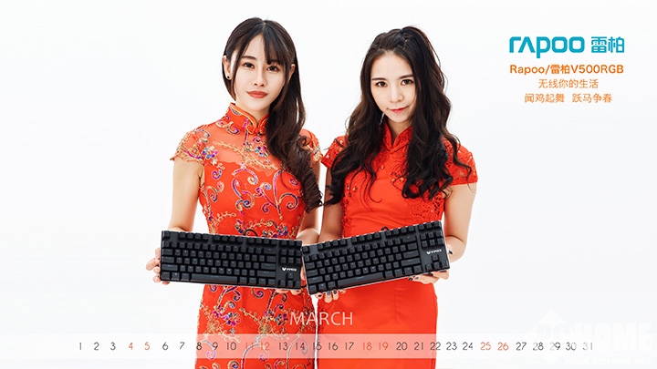 海派旗袍美女贺新春 雷柏V500RGB合金版键盘高清月历壁纸美图赏