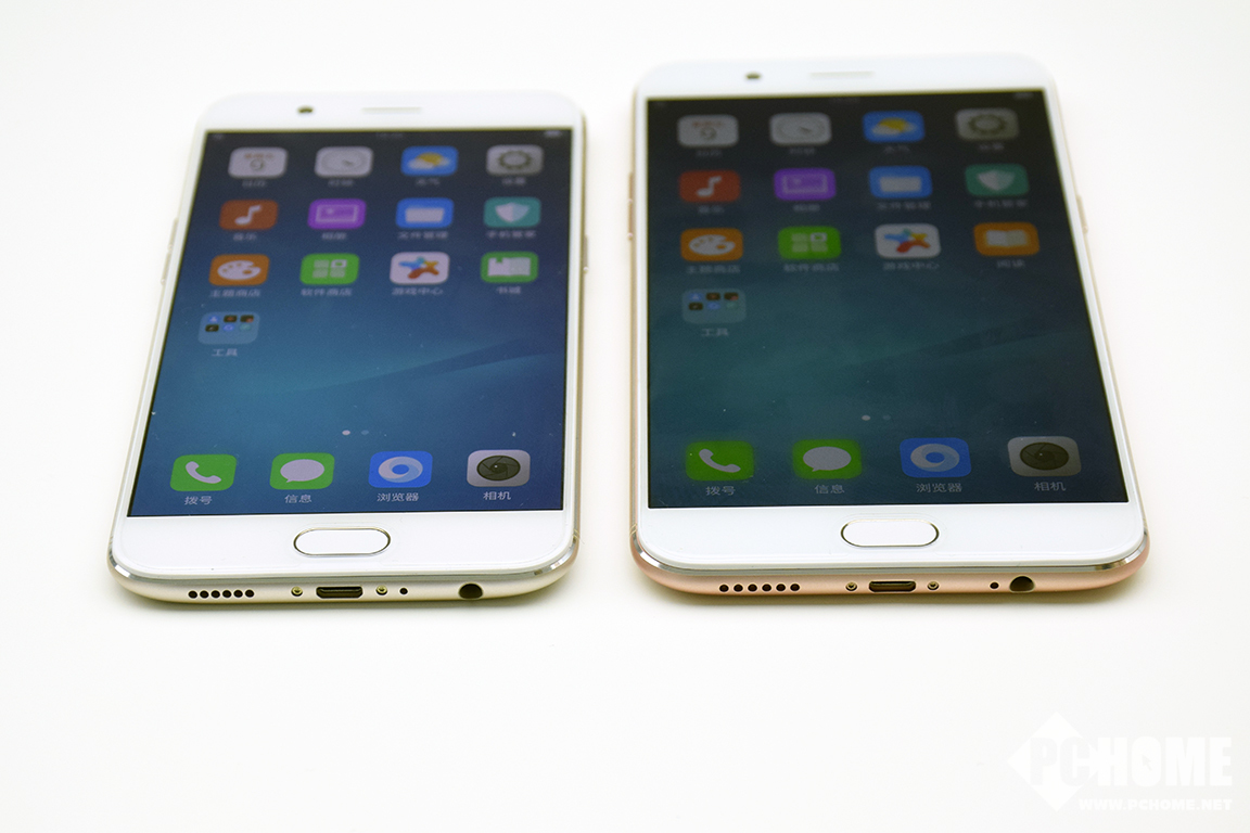 【PChome手机频道精美图集】6月9日下午,OPPO在深圳举行产品沟通会,会上正式发布OPPO R11/R11 Plus两款新品。OPPO R11延续了R系列的家族式外观设计,采用全金属一体化机身,正面和前代R9s相差不大,依旧是5.5英寸1080P显示屏,边框收窄到了1.6mm,R11 Plus则是更大的6英寸屏。背部做了贴合手掌握持的弧形侧边处理,还采用了更加美观的弧形微缝天线2.0设计,共计金、粉、黑三种机身配色。