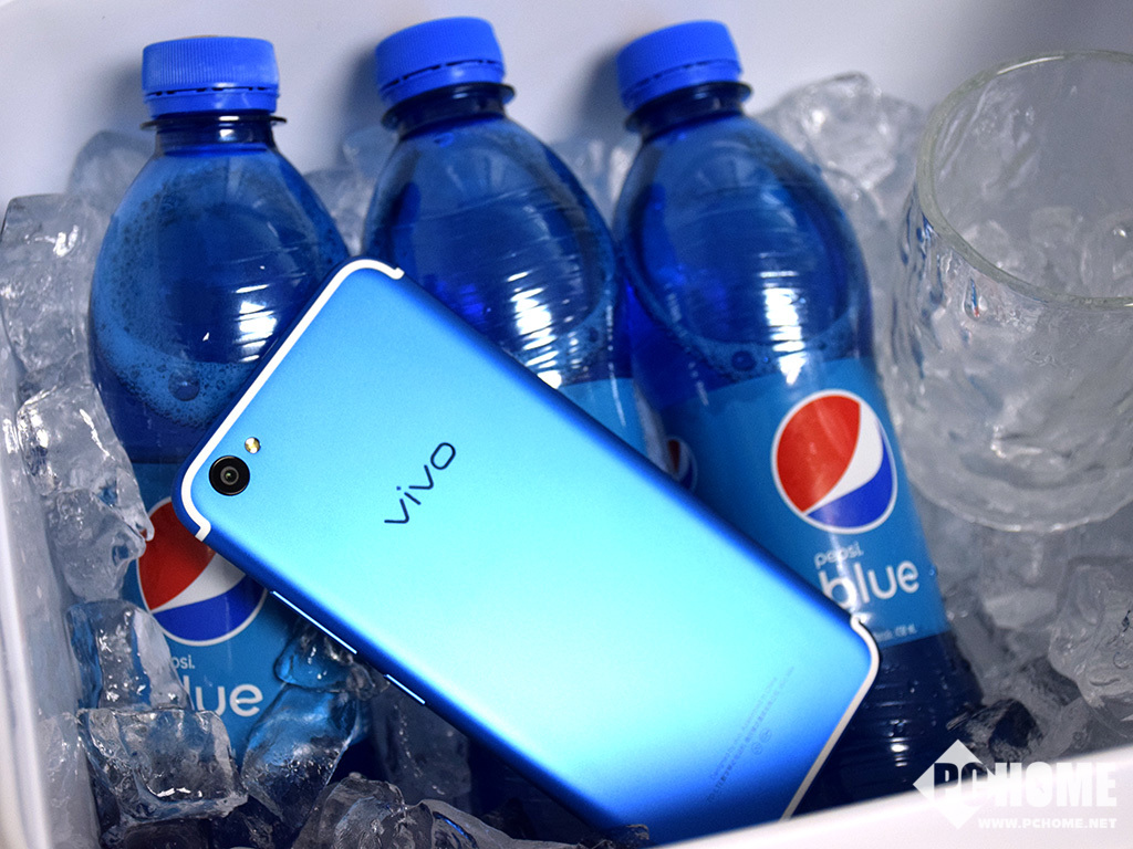 vivo方面在今天为我们的编辑部送上了一个重量十足的冰桶,打开后如同蓝色的北冰洋一般。活力蓝配色的X9s与蓝色梅子味百事可乐,可谓是绝佳的搭配,它们无疑是最适合炎夏的味道。