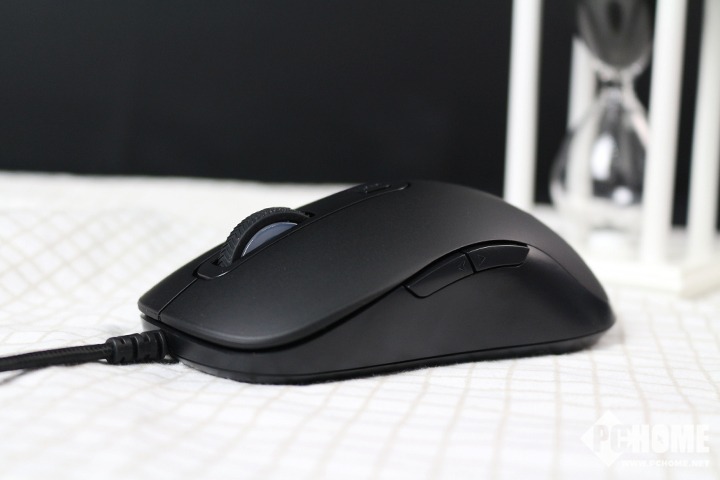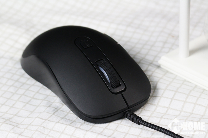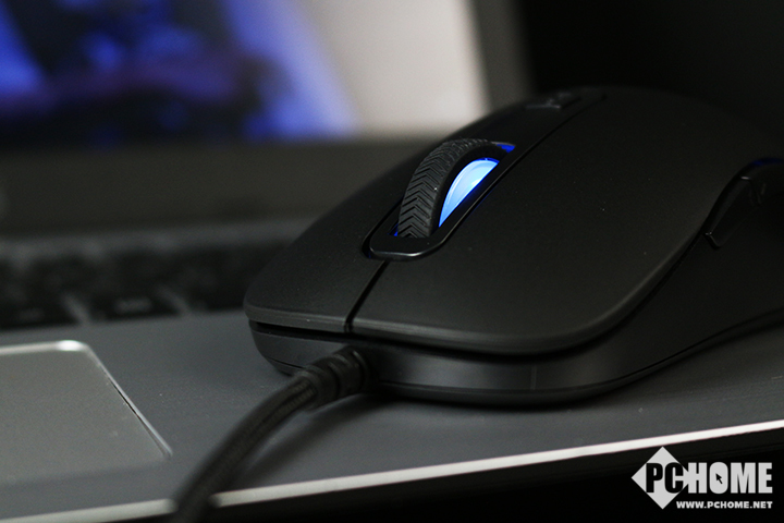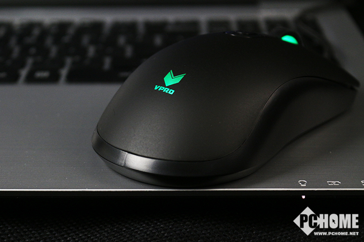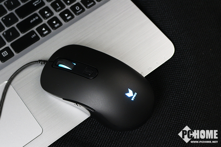 雷柏V22游戏鼠标整体黑色为主,没有任何其他元素,唯有滚轮两侧和鼠标尾部的LOGO处呈透明状,为了展示1600万色灯光系统。
