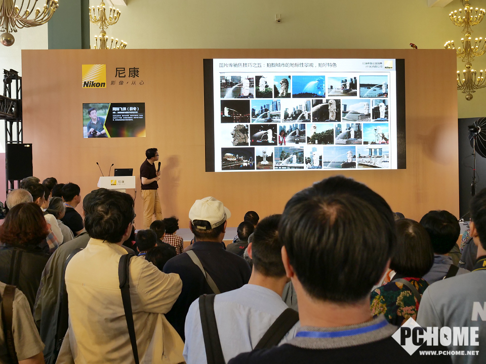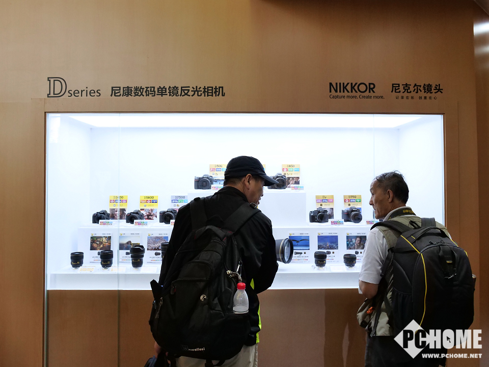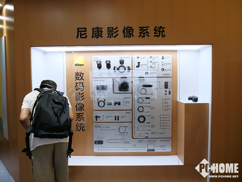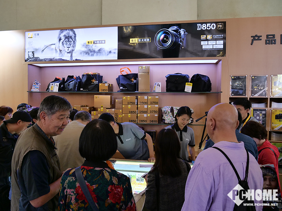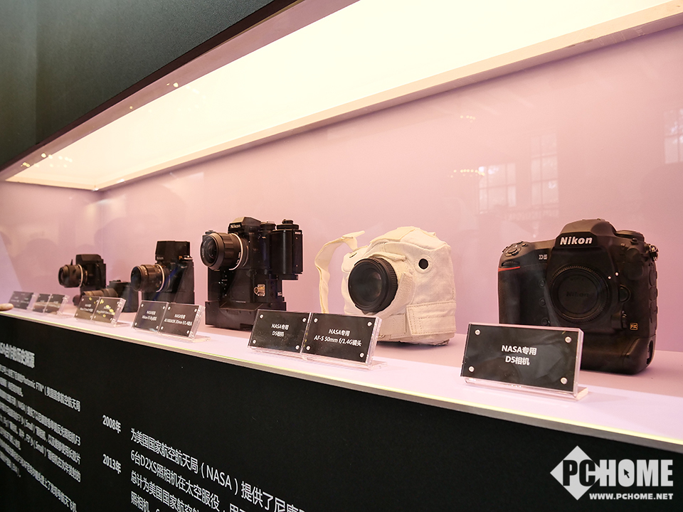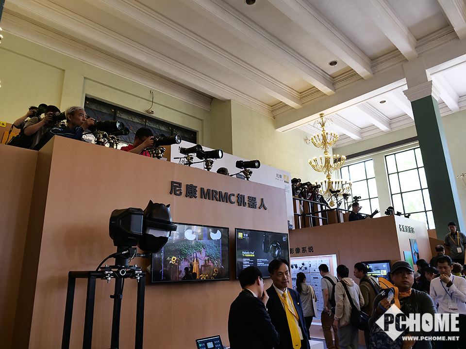 【PChome影像行摄频道 —— 美图誌】尼康展台是此次四大场中展台比较大的一个,整体格局规划的非常不错,显得非常有条例,展台布置上传统的陈列区、体验区、主舞台、炮阵等一应俱全,同时尼康MRMC机器人和NASA定制款相机也非常的吸引眼球。另外,此次P&E参展的四大厂商都将专业视频作为了自家的主打之一,包括一向不以视频见长的尼康,也开设了专门的视频讲座区,为爱好者讲解尼康的视频解决方案与拍摄技巧。