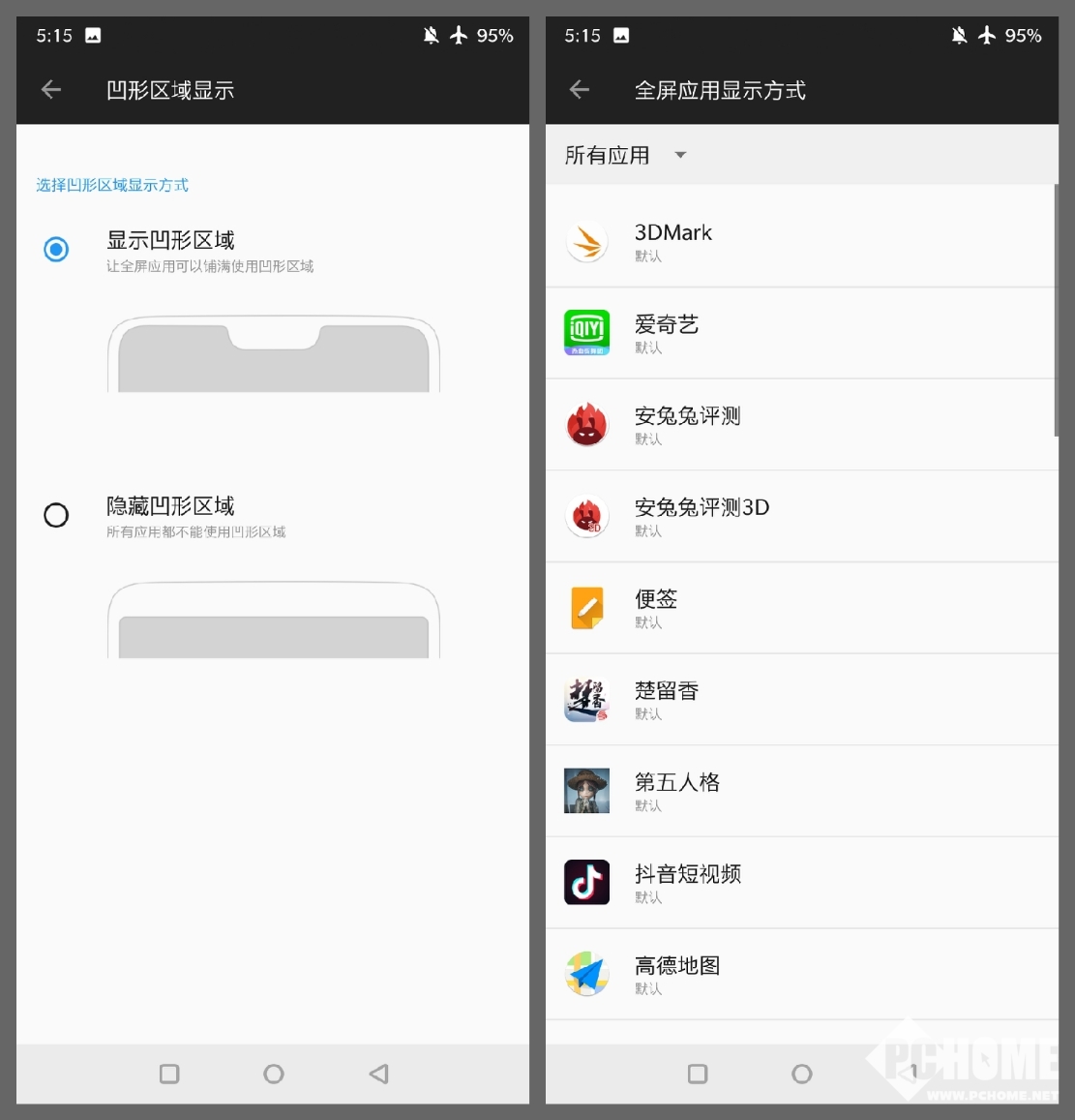 对于刘海全面屏来说,“适配”现在还是一个不大不小的问题, 在一加手机6中提供了显示凹形区域和隐藏凹形区域的设定,让用户自由选择使用,同时还提供了全屏应用显示方式,对已经适配的应用用户可以选择全屏显示,反之则关闭。