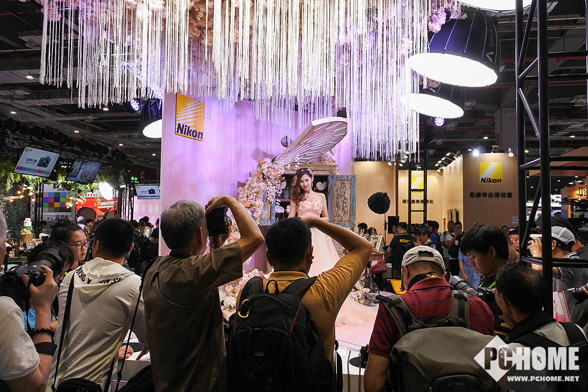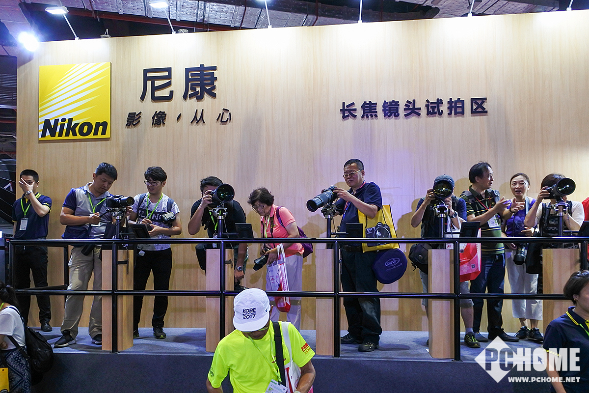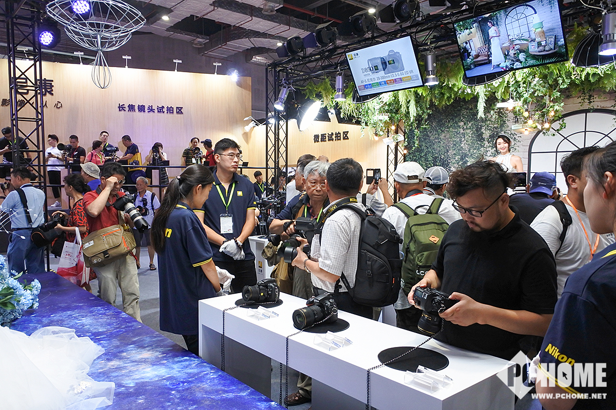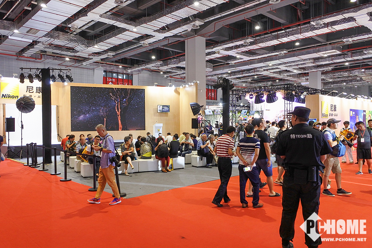 四大展商均集中在展馆的中心区域,呈四方布局。尼康展台在这个四方布局西南面,呈长条状,也是此次几家占地面积最大的。展区布置方面也符合尼康一贯的风格,包括产品展示区、产品体验区、人像拍摄体验区、微距拍摄体验区、“炮阵”、讲座区、清洁维修区、销售区等等,而没有来的大疆无人机也可以在尼康展台看见,和尼康相机组成了专业的航拍解决方案。另外,尼康的人像拍摄体验区也是几家里面主题区块最多的,蹭拍小姐姐的一定不能错过尼康展台。