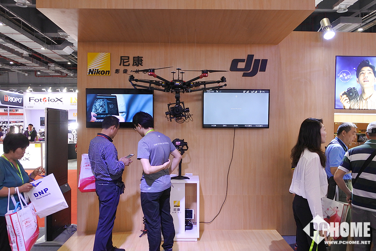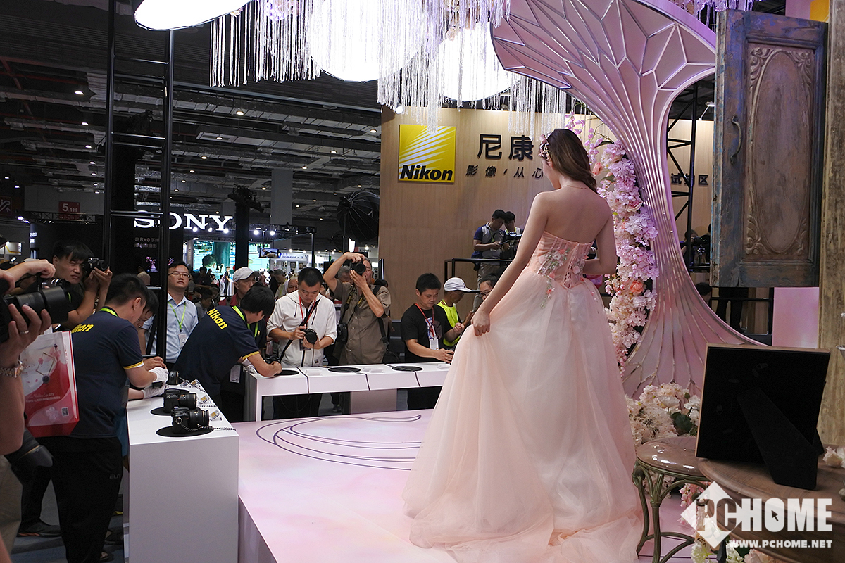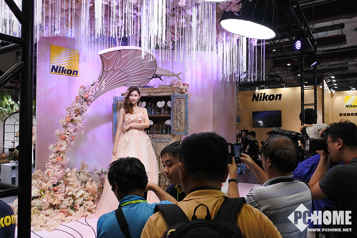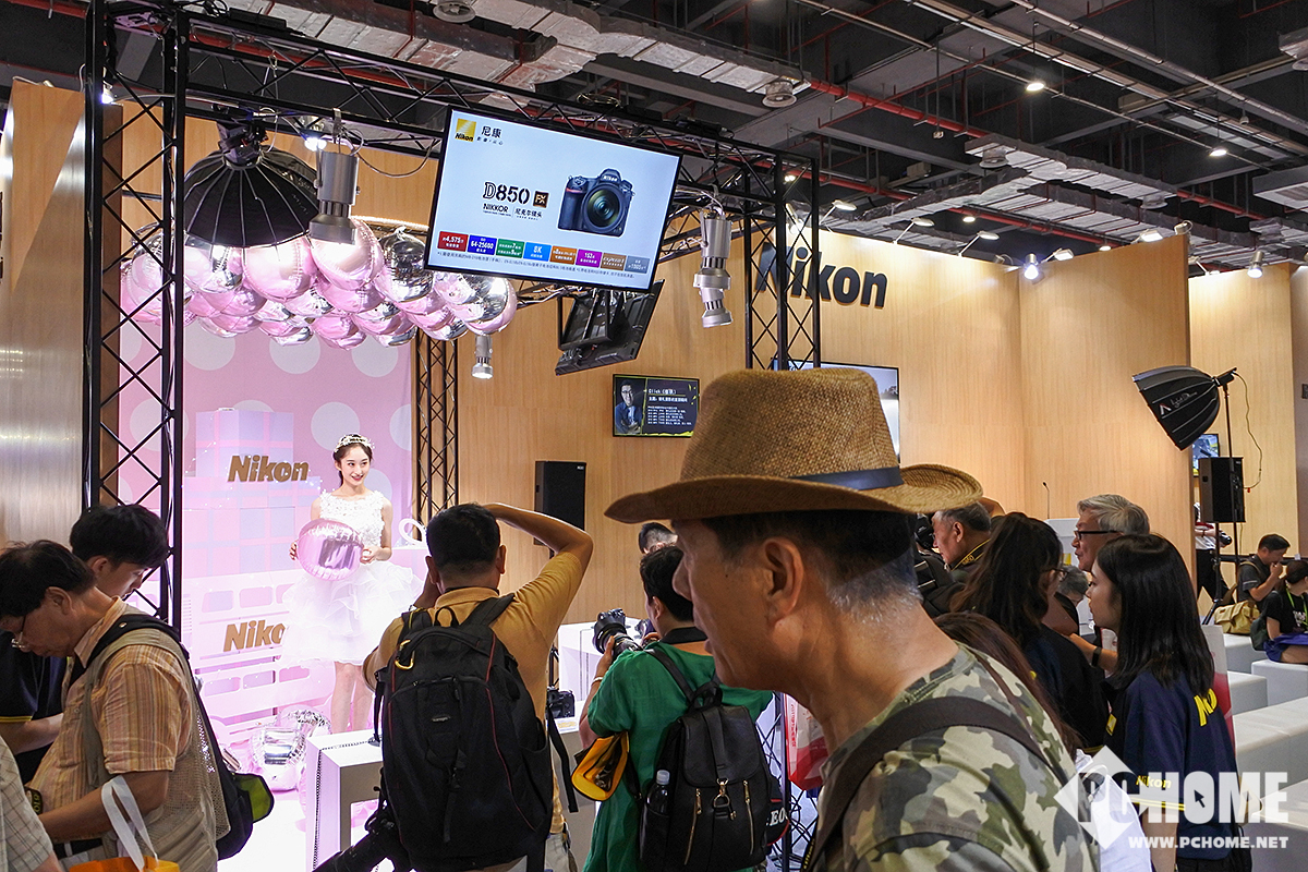 四大展商均集中在展馆的中心区域,呈四方布局。尼康展台在这个四方布局西南面,呈长条状,也是此次几家占地面积最大的。展区布置方面也符合尼康一贯的风格,包括产品展示区、产品体验区、人像拍摄体验区、微距拍摄体验区、“炮阵”、讲座区、清洁维修区、销售区等等,而没有来的大疆无人机也可以在尼康展台看见,和尼康相机组成了专业的航拍解决方案。另外,尼康的人像拍摄体验区也是几家里面主题区块最多的,蹭拍小姐姐的一定不能错过尼康展台。