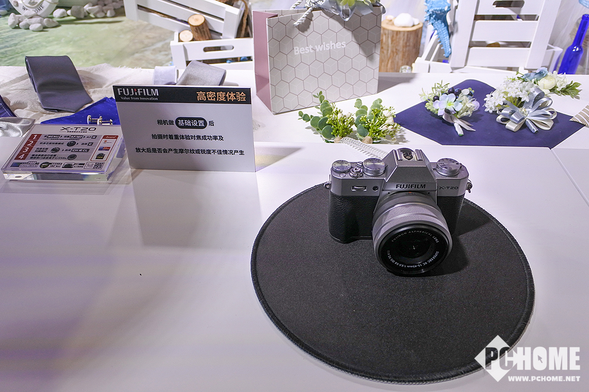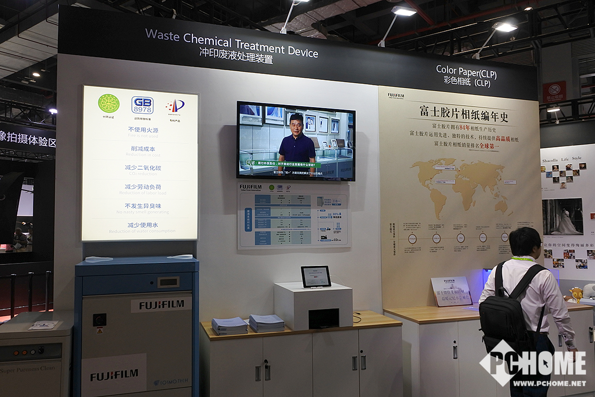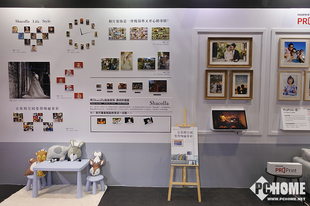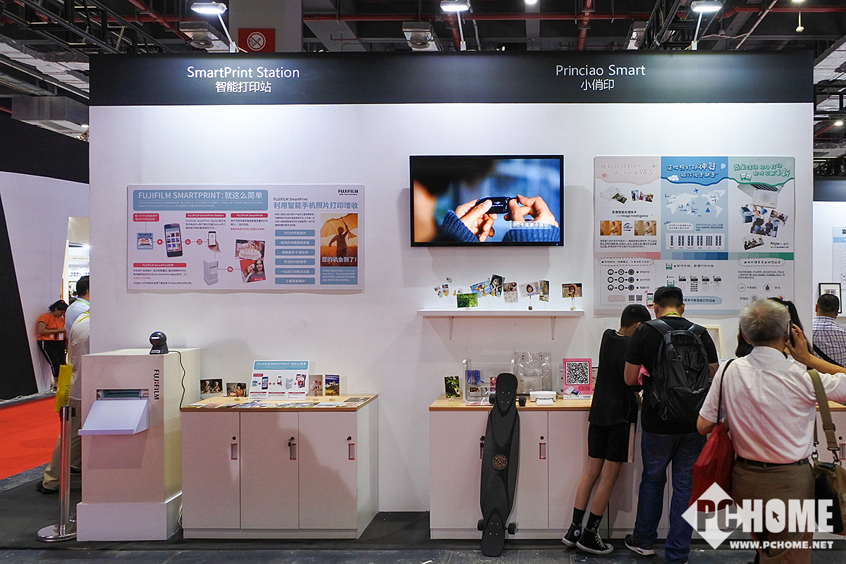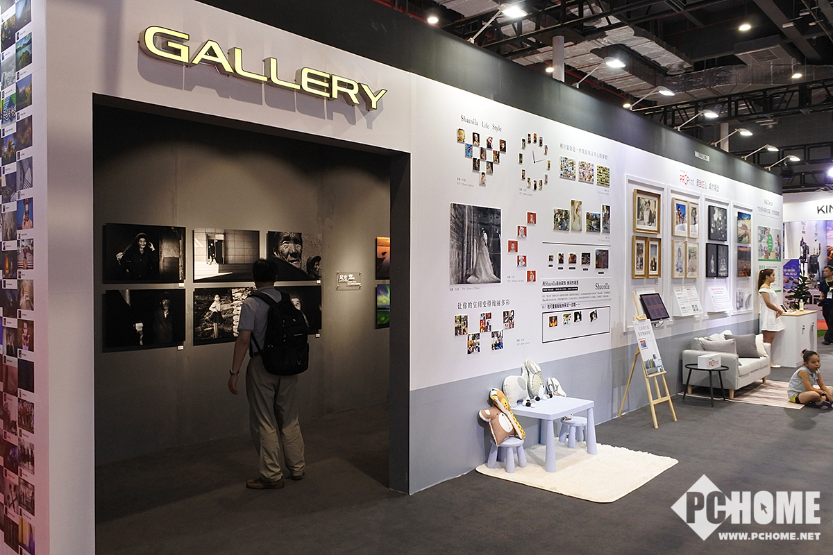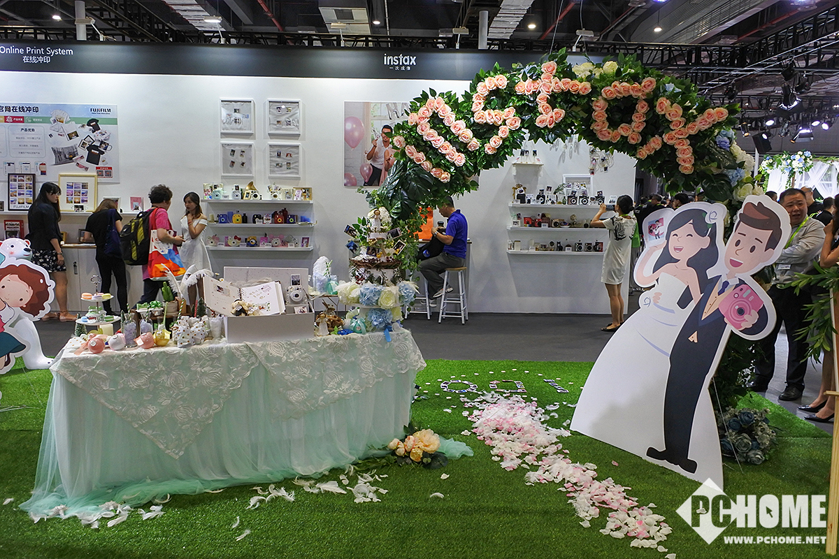 四大展商均集中在展馆的中心区域,呈四方布局。富士展台在这个四方布局东北,整个展台更方正,也比较大。从展区布置来看,富士的产品阵列更加立体,其中有GFX中画幅系统,也有富士龙CINEMA电影镜头。人像拍摄区富士也安排的和别家稍有不同,延续了以往的风格,除了围绕产品体验的公共区域,还有专门用于体验GFX中画幅和MK专业视频的特别区域。画廊也是富士的一大特色,这也和富士是胶片企业出身有很大的关系。偌大的富士展台,除了富士数码相机以外,一次成像instax和专业打印输出也占据了主要的位置,为喜欢富士胶片的用户带来了不同的观展感受。