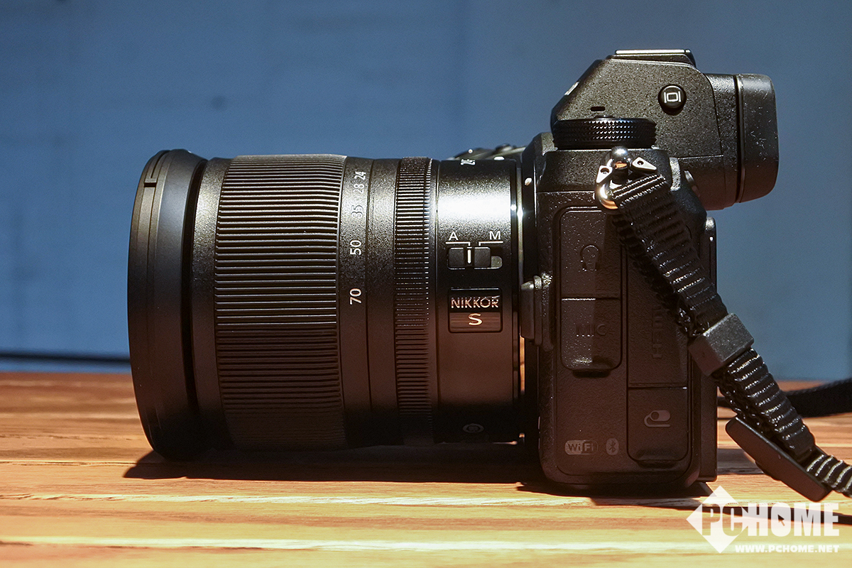 【PChome影像行摄频道——评测室】尼康全画幅微单Z7正式发布,将会于9月下旬正式上市,而我们也有幸在发布会现场拿到了Z7的真机,进行了全球首发的体验。先来说说外观,之前预告视频出来时由于惊艳的大卡口,所以我们担心Z7和Z6尺寸会比较大。而实际上手,尼康Z7的体积其实并不大,就是全画幅微单标准的尺寸,但是却带来了55mm的卡口直径,可以支持f/0.95之巨的超大光圈镜头(该镜头已在尼康的明年计划中)。当然,Z7除了一眼就能区别出的大卡口,手柄部位也是很尼康的,握持舒适,并且在手柄侧面继续保留了尼康标志性的“红勾”。机顶部位,有一块肩屏,对于主打专业用户的微单相机来说,有肩屏不仅可以快速调整拍摄参数,也符合单反老用户的操作习惯。翻转触控屏的存在,其实Z7整体的按键相对还是比较简化的,不过Z7在卡口边上依然预留了两个Fn键,用于自定义功能。卡口内容纳了一块4575万有效像素的全画幅CMOS,不过从CMOS边角来看,卡口内容积还是很富裕的,这也为镜头研发和整体成像带来了保障。在CMOS前覆盖了493点复合自动对焦系统,考虑到如此之多且密的焦点覆盖,触摸选区以外,尼康也为Z7提供了操作摇杆,可以快速精准的选区自己想要的对焦点。此次体验搭配的镜头是尼克尔 Z 24-70mm f/4 S镜头,关于Z7和这颗镜头的实拍,请继续关注PChome之后的内容。