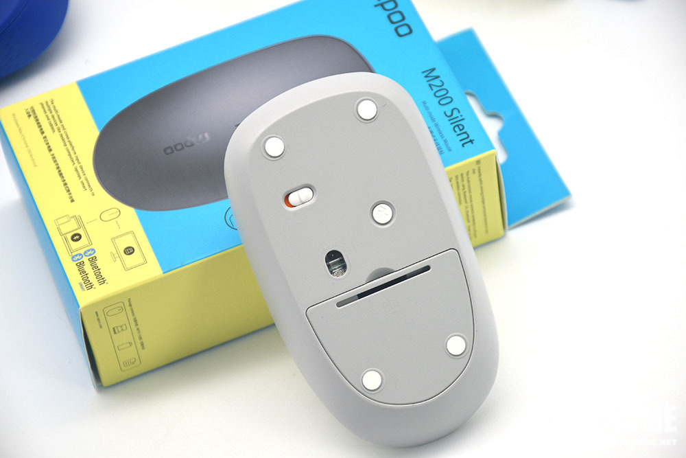 在配置方面,雷柏M200搭载了与M100相同的1300DPI寻迹引擎,不仅运行顺畅操作灵敏,对底部界面的材质也不挑剔,因此整体性能十分不错。通过蓝牙/2.4G切换键,用户可以实现在三台电脑设备上的切换操作,十分人性化。