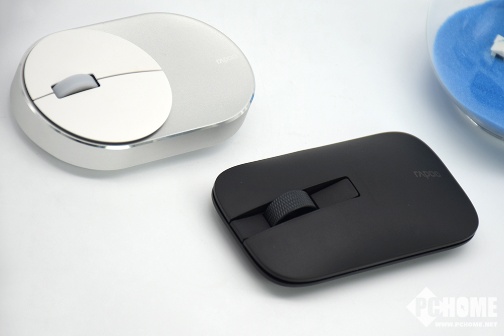 从侧面看,雷柏M550的造型更具设计感,船型底座将鼠标整体轻轻衬起,显得轻盈别致,同时鼠标滚轮采用镂空造型,让这款鼠标看上去更具灵气。