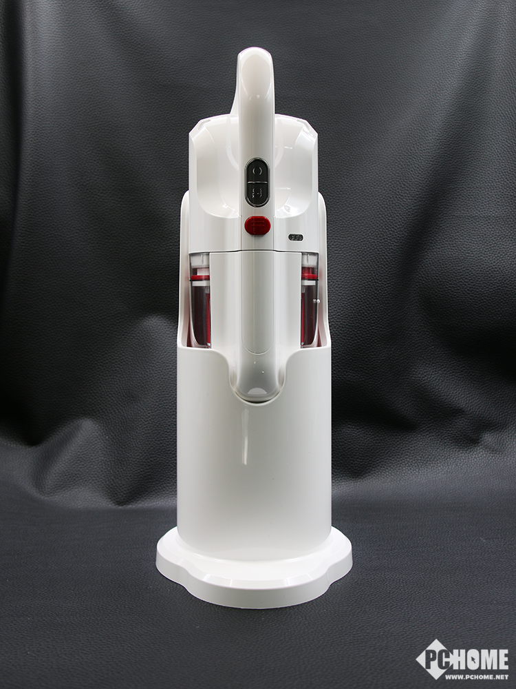 吸尘器主机背后有两枚金属触点,插入充电底座之后可以进行接触充电。同时充电底座不仅是充电器,还可以作为坐式收纳器使用,保证家居整洁。