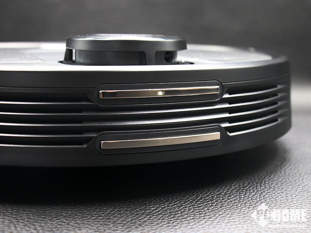 浦桑尼克M7侧边有可以与坐式充电器进行接触的金属条,此外浦桑尼克M7的前半部分机身可以支持一定量的缓冲,这样在接触墙壁或障碍物的时候可以进行探测并规避开。