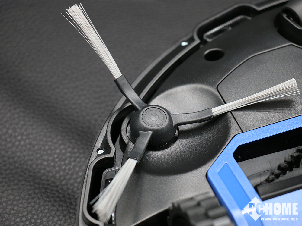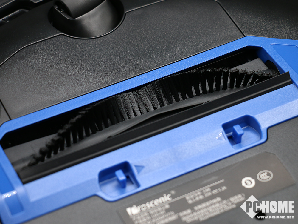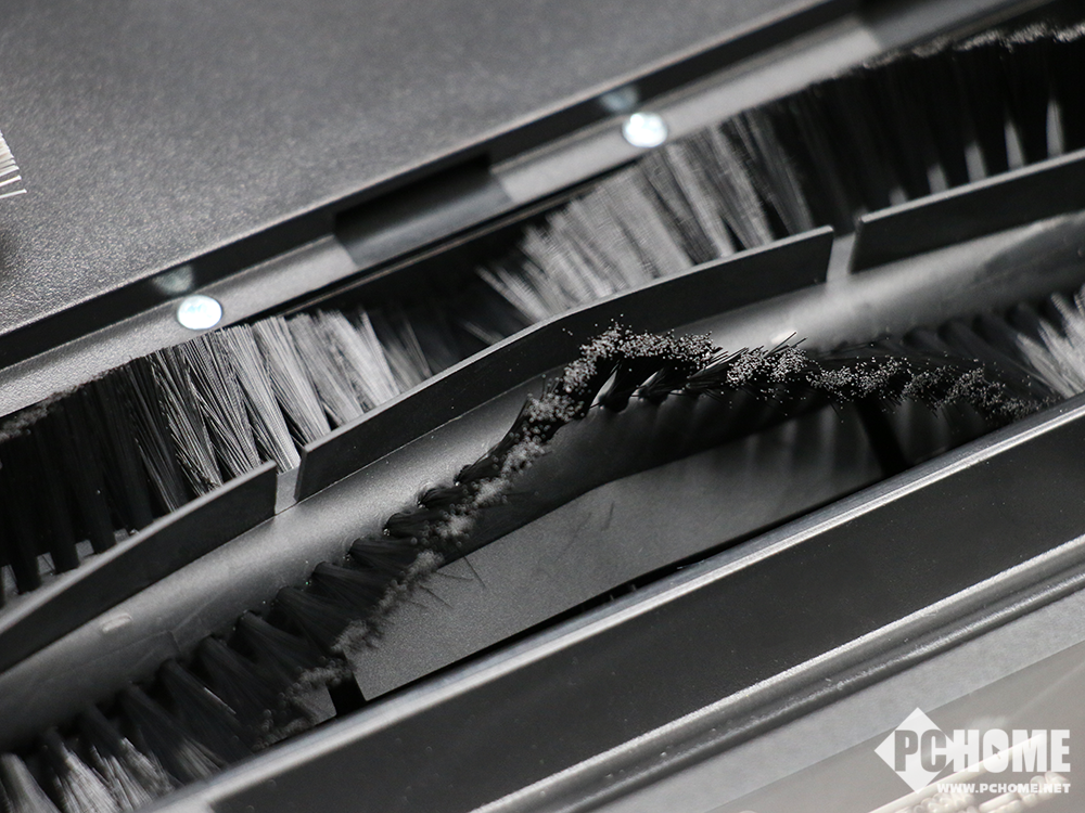 浦桑尼克M7的中央位置则为地面清扫时的主力滚刷,可以对于一些地毯上或者地砖缝隙中的灰尘颗粒进行清洁,硬毛刷与橡胶带也可以很好地将颗粒进行清扫。