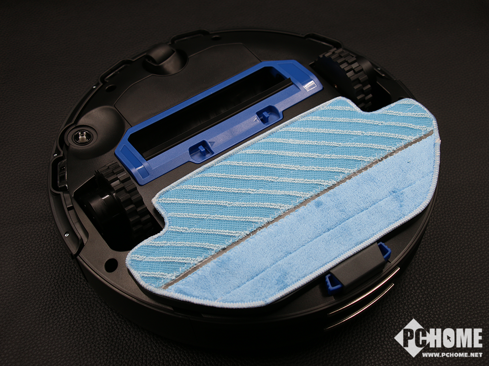 在机身靠后的位置,有一个卡扣区域,这里可以方式拖地模式时需要使用的抹布,只要将抹布支架以正确的方式推入卡扣区域即可完成卡合,再将水箱换入就可以开启拖地模式。