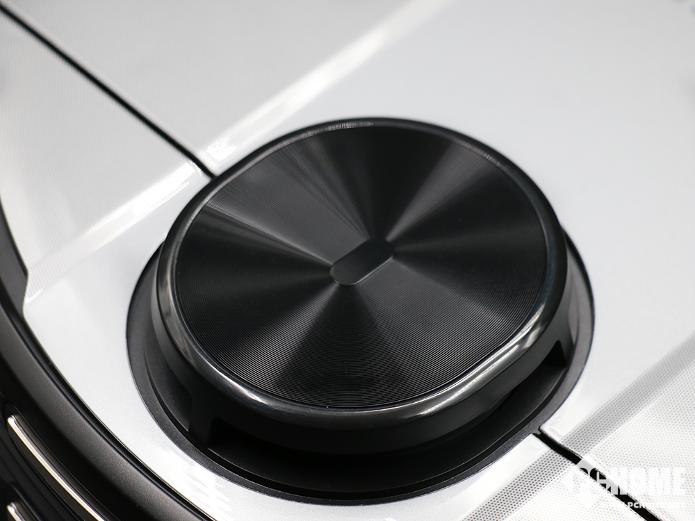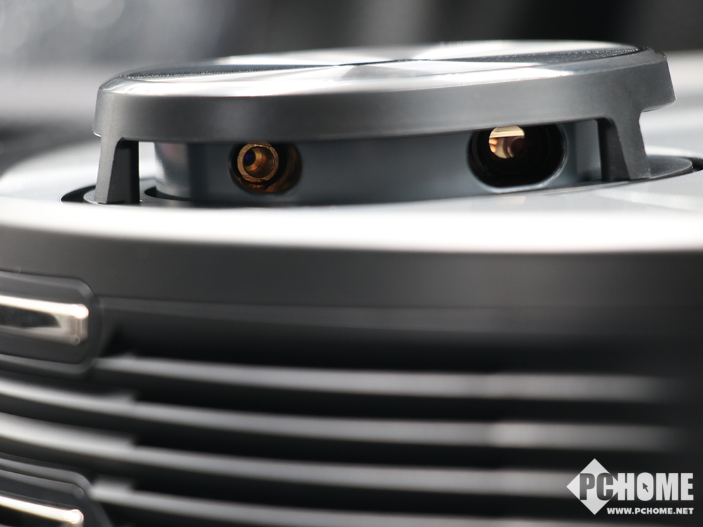 在正面的按键方面,浦桑尼克M7只保留了开关/智能回冲两个按键。主机顶部的“指挥塔”部分则是浦桑尼克M7的杀手锏所在,集成了无线载波+激光巡航双定位技术。通过激光扫描对全屋布局进行构图,再通过无线载波技术来有效抗干扰,从而打造完美的探测/清扫模式。