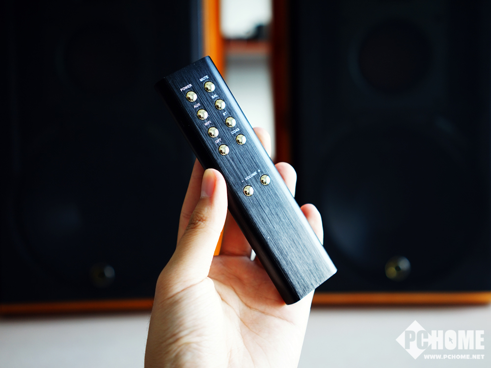 音量、低音以及三频的均衡度调节旋钮位于线路接口之上,用户可以随时根据自身的需求来改变设定。同时惠威在M5A的包装内还包含了一枚拉丝铝材质的遥控器,可以用户用户远程遥控音箱,控制三频和声音倾向,绝对是家居场景中的必备配件。