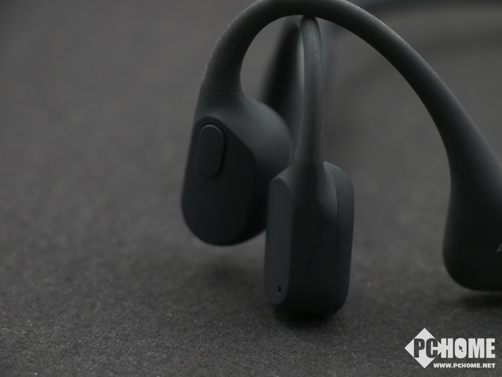 首先在外观方面,Aeropex还是保持了韶音传统的骨传导耳机造型,不过整体的质感和设计精致度确实好了很多,最直观的体现就是整体所有边缘的位置都采用了圆角的过渡,周身找不到任何一个直角造型。
