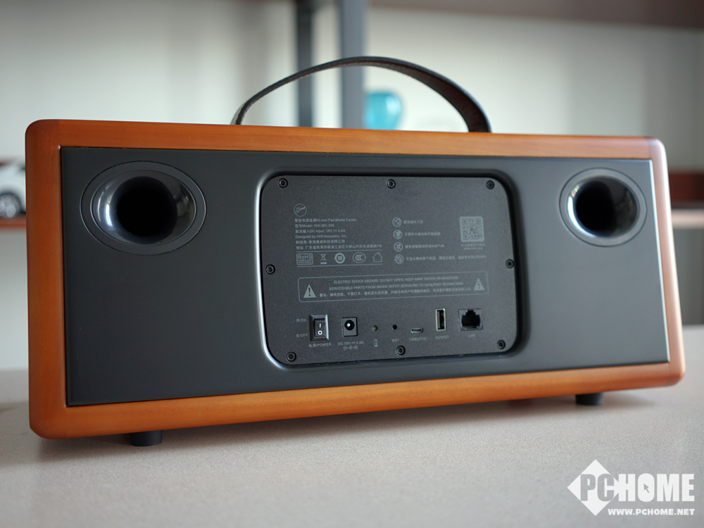 MC200与惠威的音响设备相同,采用了木质纹理的设计,精致的木质外观配合香槟金的面网更具奢华的质感,真皮提手也将时产品的质感再次提升。同时前倾的面板和斜仰角设计也可以使得声音准确的向前传播。声音方面,MC200采用了20mm的金属球顶高音,轻薄的金属作为合金振膜材料也让声音的通透感加强。3英寸的大动态长冲程重低音单元也使得声音更具饱满的质感。MC200支持多种媒体操作效果,不论是听书还是听音乐都可以智能唤醒操作,8英寸的触控屏幕也为日常使用打来了更多的交互可能性。整体的产品细节方面惠威MC200也非常的考究,实木的腔体外壳,金属网罩以及细腻的皮带质感,无处不透露着精工细作的匠心。