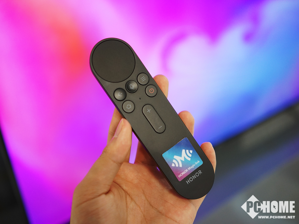 说完了智慧屏的整体外观之后我们再来看必不可少的一个配件—遥控。荣耀智慧屏的遥控器同样是采用了极简的设计风格,简单的几个按键以及其标注的图案都非常直观的将其功能表达出来。
