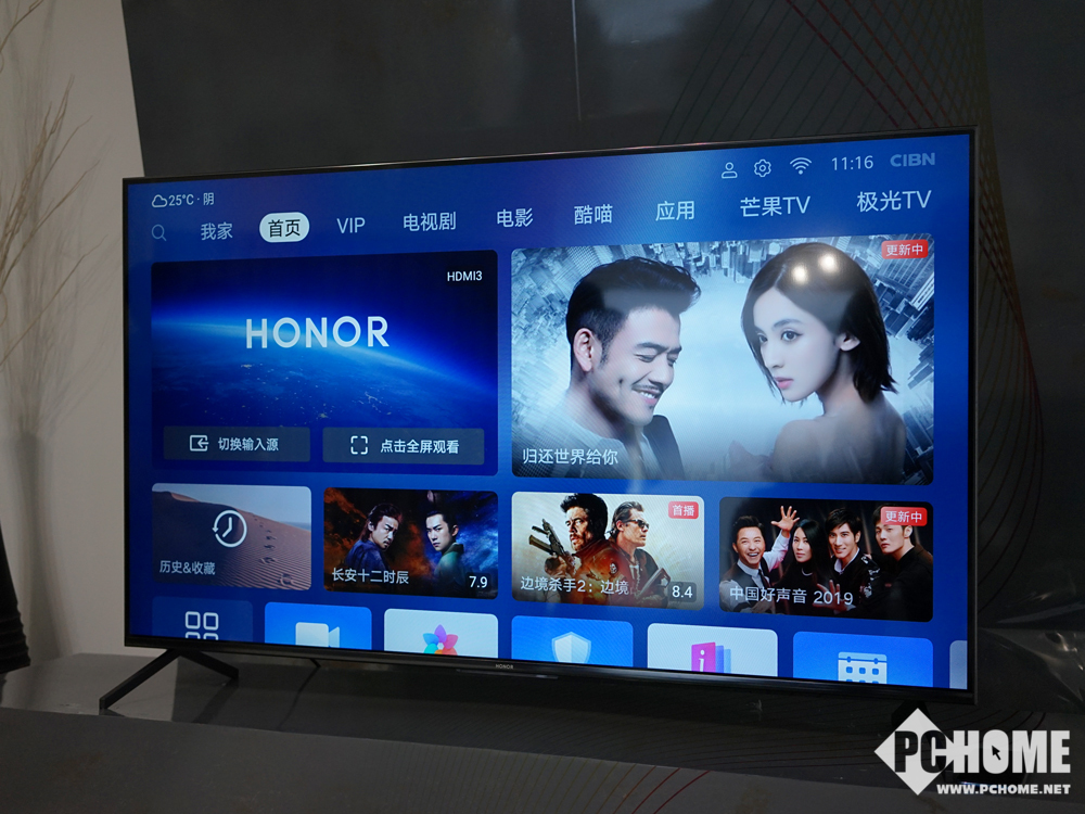 系统UI部分,荣耀智慧屏乍看之下与我们日常见到的智能电视UI没有什么差别,但在细节部分却可以看到荣耀并没有完全将手机思路全盘照搬过来。