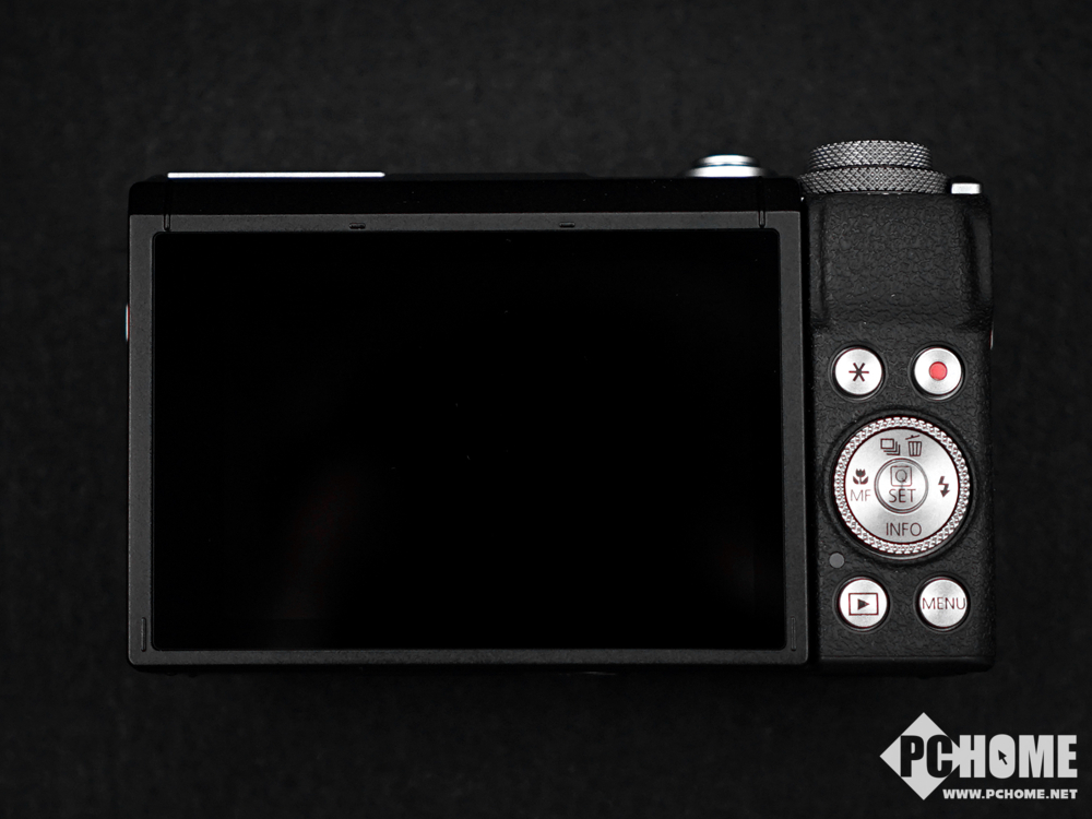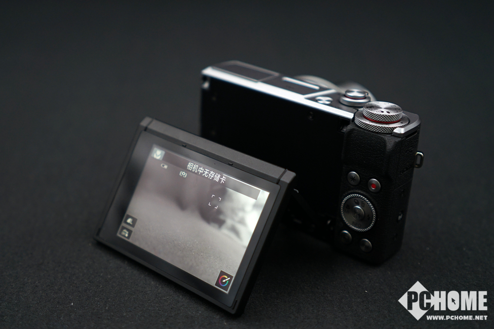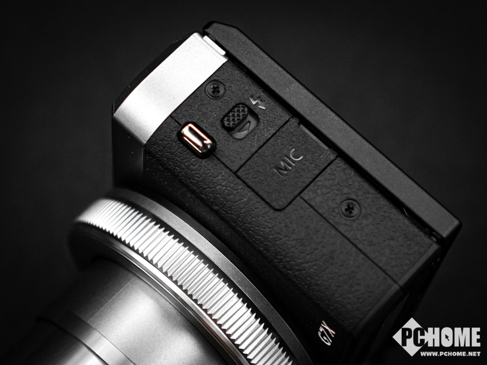 操控方面,左侧的小手柄更方便握持,也提升了手感,这也是备受用户肯定的设计。按键方面采用了经典的布局,机顶是电源、快门、变焦杆、曝光补偿/模式复合转盘,快门与转盘部分标志性的红圈依然得以保留。