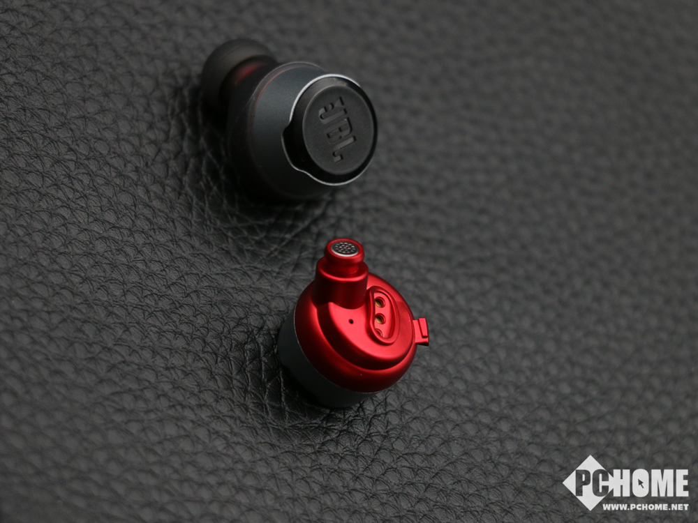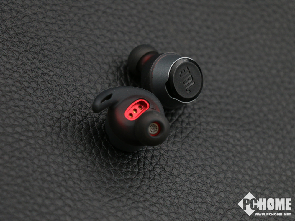 耳机内侧则采用了鲜艳的金属红色,虽然整体覆盖在了半透明的硅胶套之下,但从金属触点的位置也可以清晰的看到红色,与外层的灰黑色形成了鲜明的反差。