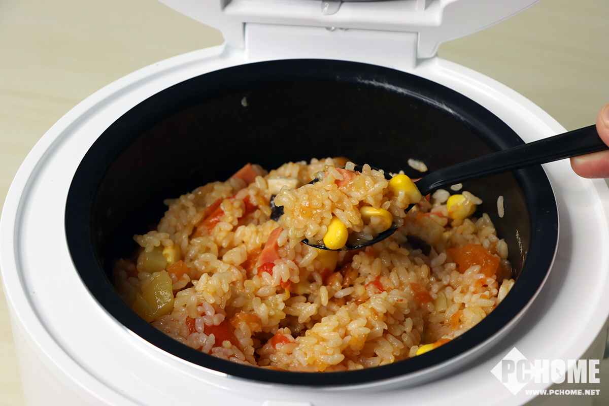 网红番茄饭的制作并不复杂,将下厨前准备的食材清洗干净后,逐一放入锅中。再辅以适当的油盐酱,用手机上的APP定时后就可以等待香喷喷的番茄饭啦。