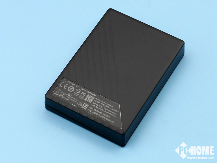 新款WD My Passport 5TB使用了新颖时尚的外观设计,19.15mm的轻薄机身更加方便携带。机身沿袭了“护照”系列的风格,采用了极具商务气息的黑灰配色,大间隔的斜向纹路,增强了质感,触感也比较舒适。