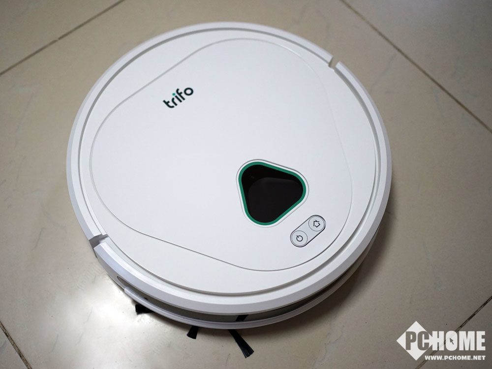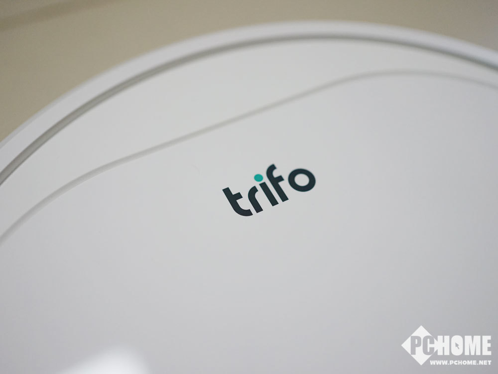 首先是外观,Trifo MAX与我们目前见到的扫地机器人既相同又不同,相同的地方在于采用了同样的圆形机体设计,同样前置有碰撞缓冲区域。但不同的地方就在于Trifo MAX的上层是一个完整的平面,曾经我们见怪不怪的扫地机器人舰桥部分在Trifo MAX上消失不见。