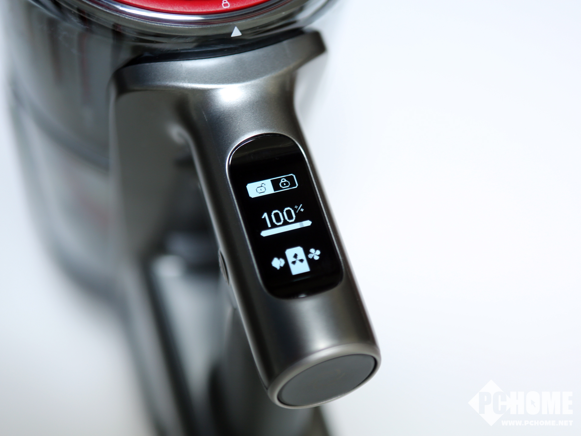 首先来看H6的手柄部分共有四个可操作按键以及一块OLED屏幕,OLED屏幕用于显示电池电量和吸力档位,顶端位置还有一个按键锁,方便每次使用的以固定档位进行操作。
