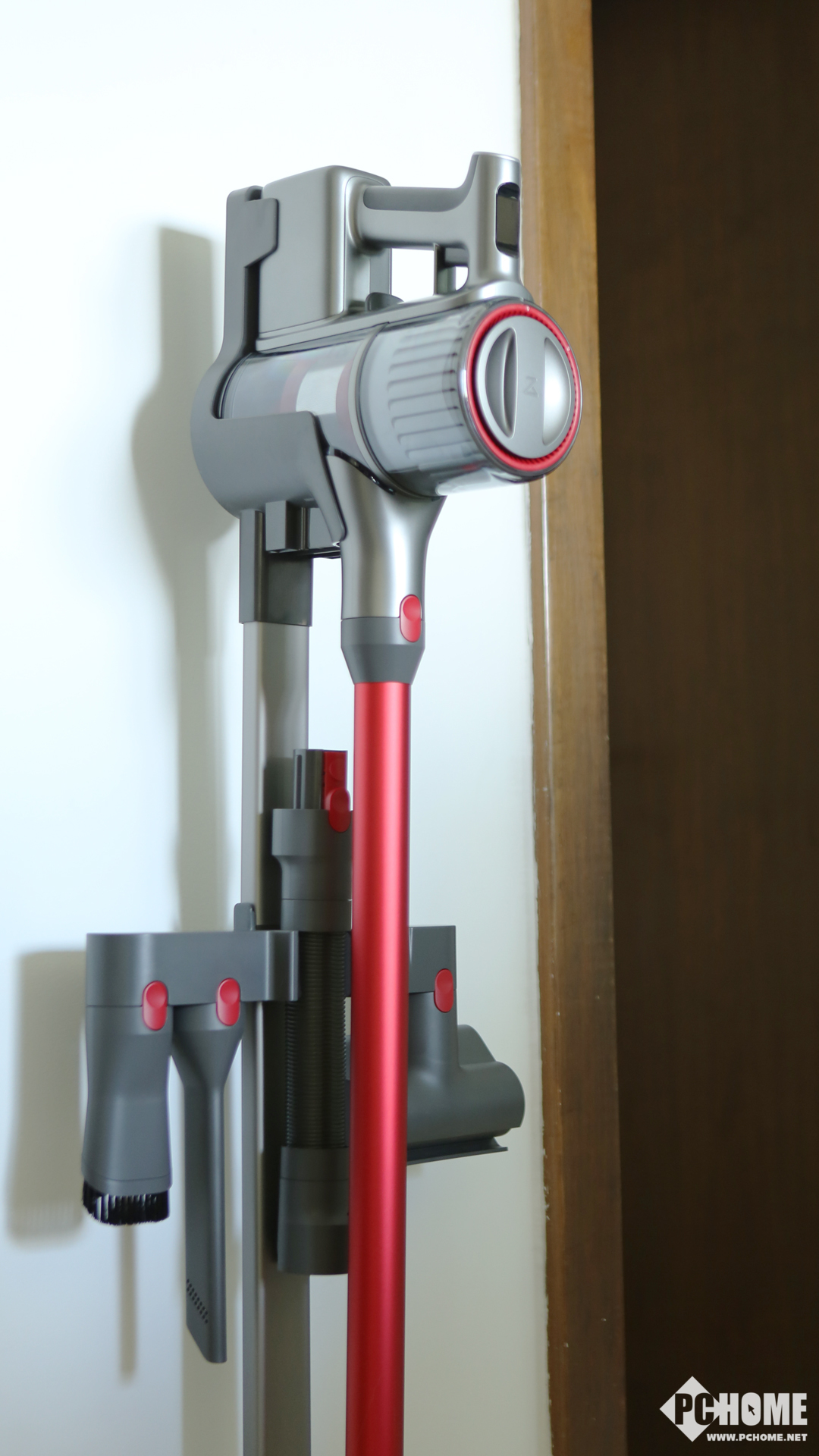同时,在H6的包装里还有两根硬质铝管和一个金属的底座组成的支架,这也是目前非常少有的在手持无线吸尘器包装中直接赠送收纳支架的产品,实属难得。