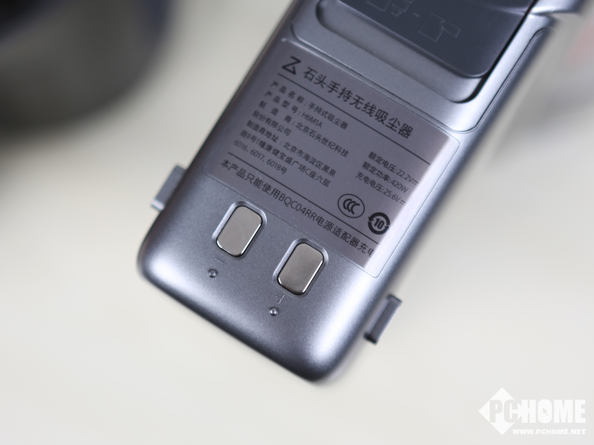 综合来看,石头扫地机器人H6的手柄部分设计还是比较合理的,一只手就可以完全搞定且无需直接接触尘盒就可以将灰尘倾倒。电池仓部分,石头科技并没有选择常规的18650电芯,而是选择了聚合物锂电池,这样的好处就是电池密度更高,且重量更轻,对于一款手持无线吸尘器来说体验提升会非常明显。