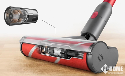 说到吸头,这一次的石头手持无线吸尘器H6在全效自适应地刷吸头上增加了行星齿轮减速器,这种常用于汽车变速箱中的技术,具有寿命长、扭矩大、结构紧凑等优势,当石头科技将电机和减速器都放置到滚刷内部之后,电机的高转速就可以与刷头的转速相匹配,根据推动的阻力来调整,适配更多的地面材质。