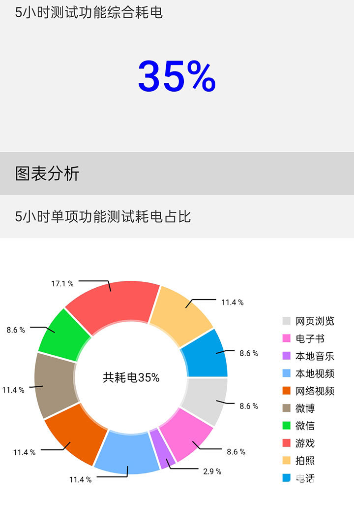 测试全程开启高分辨率、高刷新率、4G网络并连接Wi-Fi,屏幕亮度、音量均为50%。实际耗电35%,剩余电量65%,展现出了大容量电池的优势,整体续航水平异常优秀。