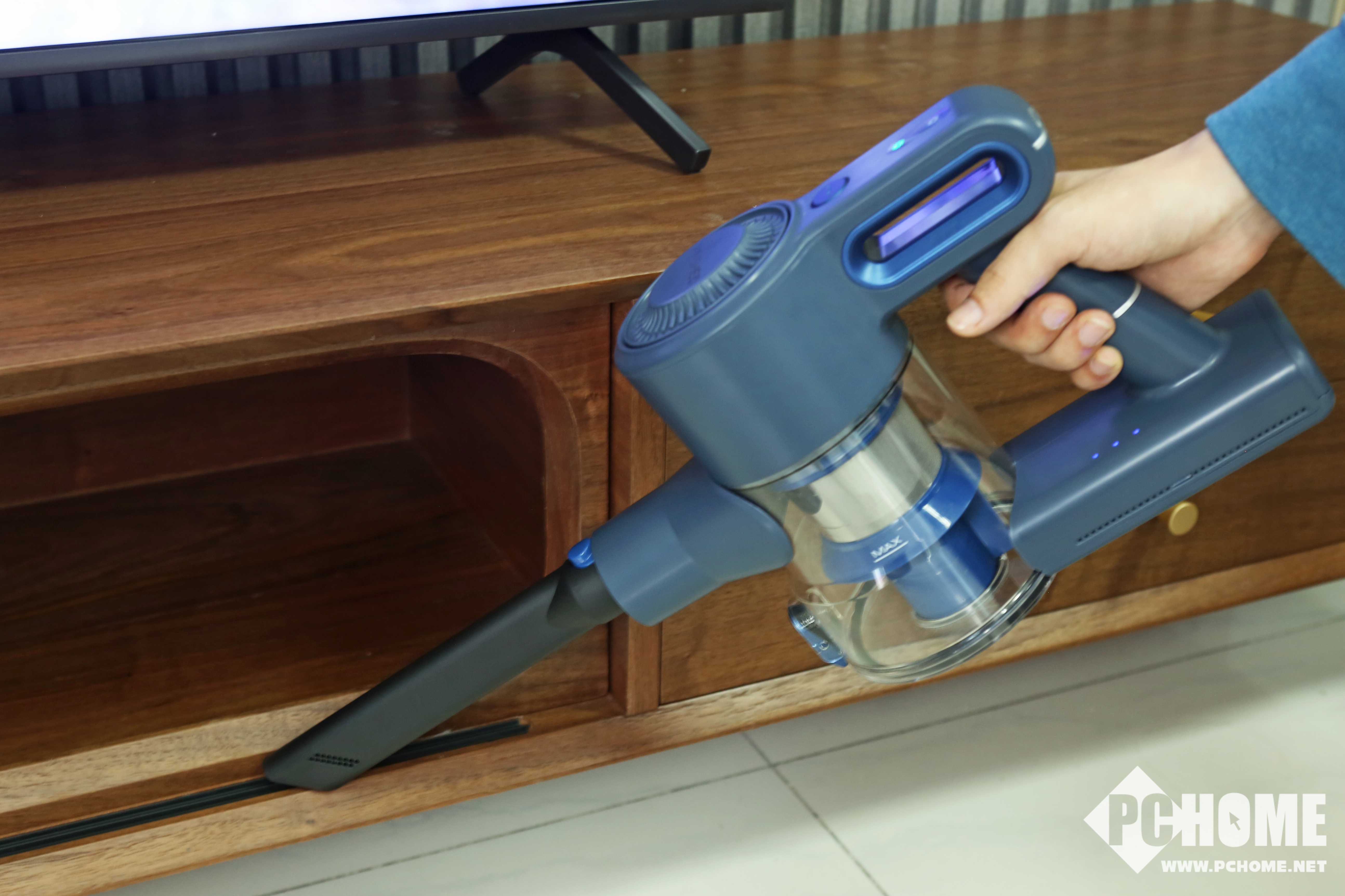说到清理低矮家居底部,就不得不提到一个问题就是可视化。假如光线的亮度不是足够高,我们在清洁这些地方的时候容易看不清,信社Z5无线吸尘器人性化的配备了前置LED照明,即使在光线昏暗的情况下,也会让我们不放过任何一个角落。