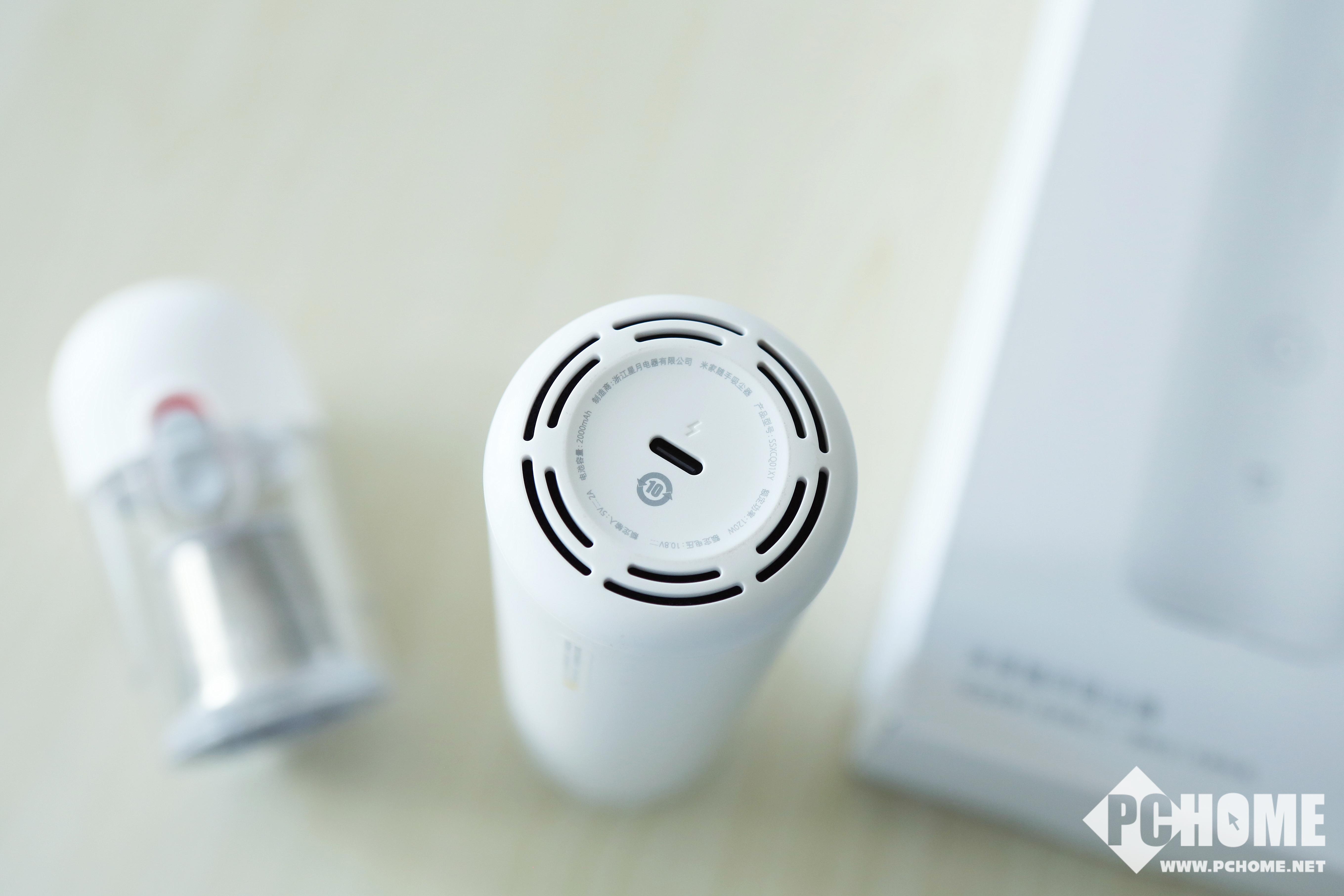 米家随手吸尘器给人的直观感受就像是一个保温杯,摆在桌面就可以混进矿泉水瓶和保温杯的队伍,相信会有部分不认识这款吸尘器的人在桌子上看见它时,不会在第一时间认出来这是一款吸尘器。