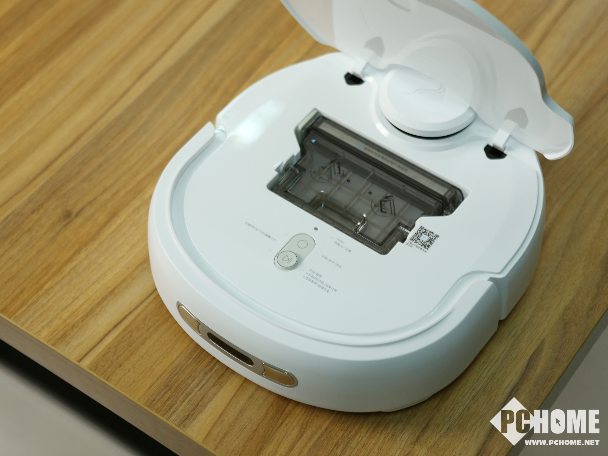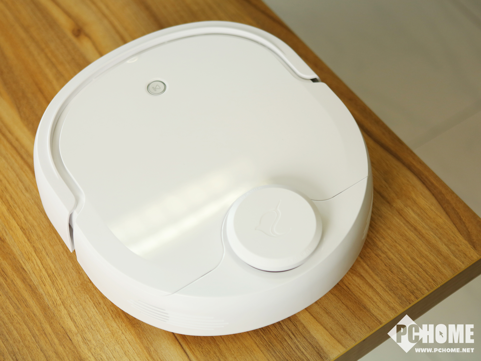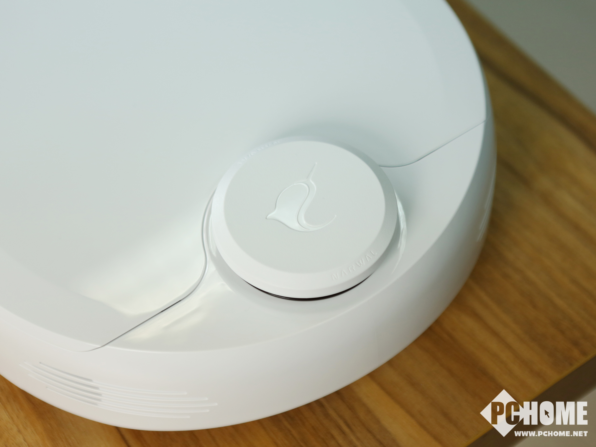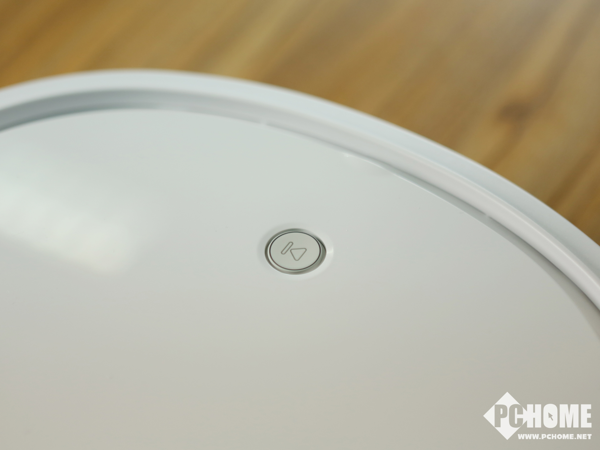 顶部位置依旧是有激光扫描的舰桥凸起,在上盖板上只有一枚启动/暂停键外露,机器人本身的开关机按键则隐藏在了盖板下方。