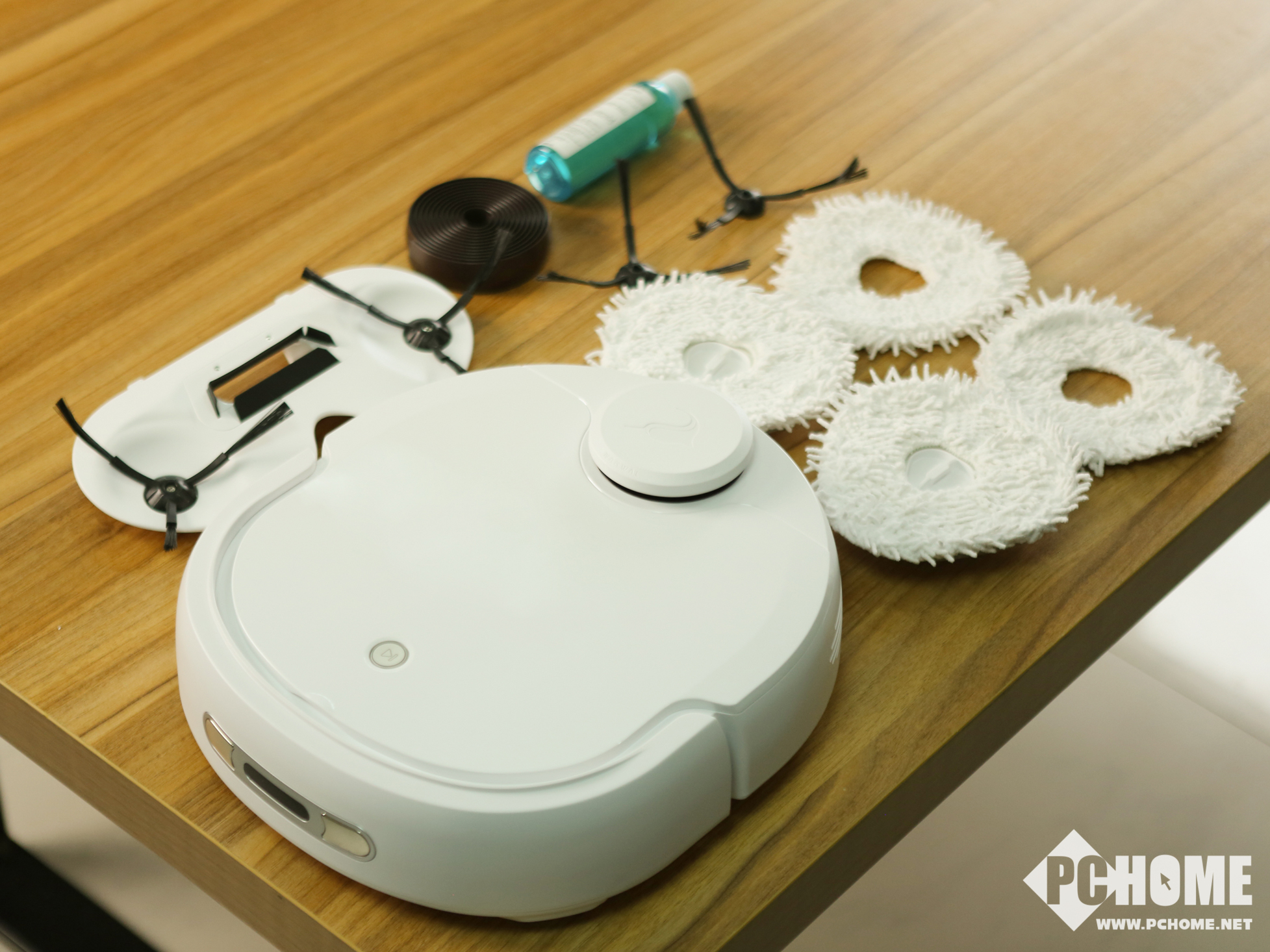 说到配件,这也是「小白鲸」拖地机器人非常值得一提的部分,除了边刷模块和拖布模块之外,「小白鲸」拖地机器人的包装里还有一瓶柠檬味的清洁剂、水箱过滤海绵以及虚拟墙地贴,这也是目前我们见过的扫地机器人中配件最丰富的。