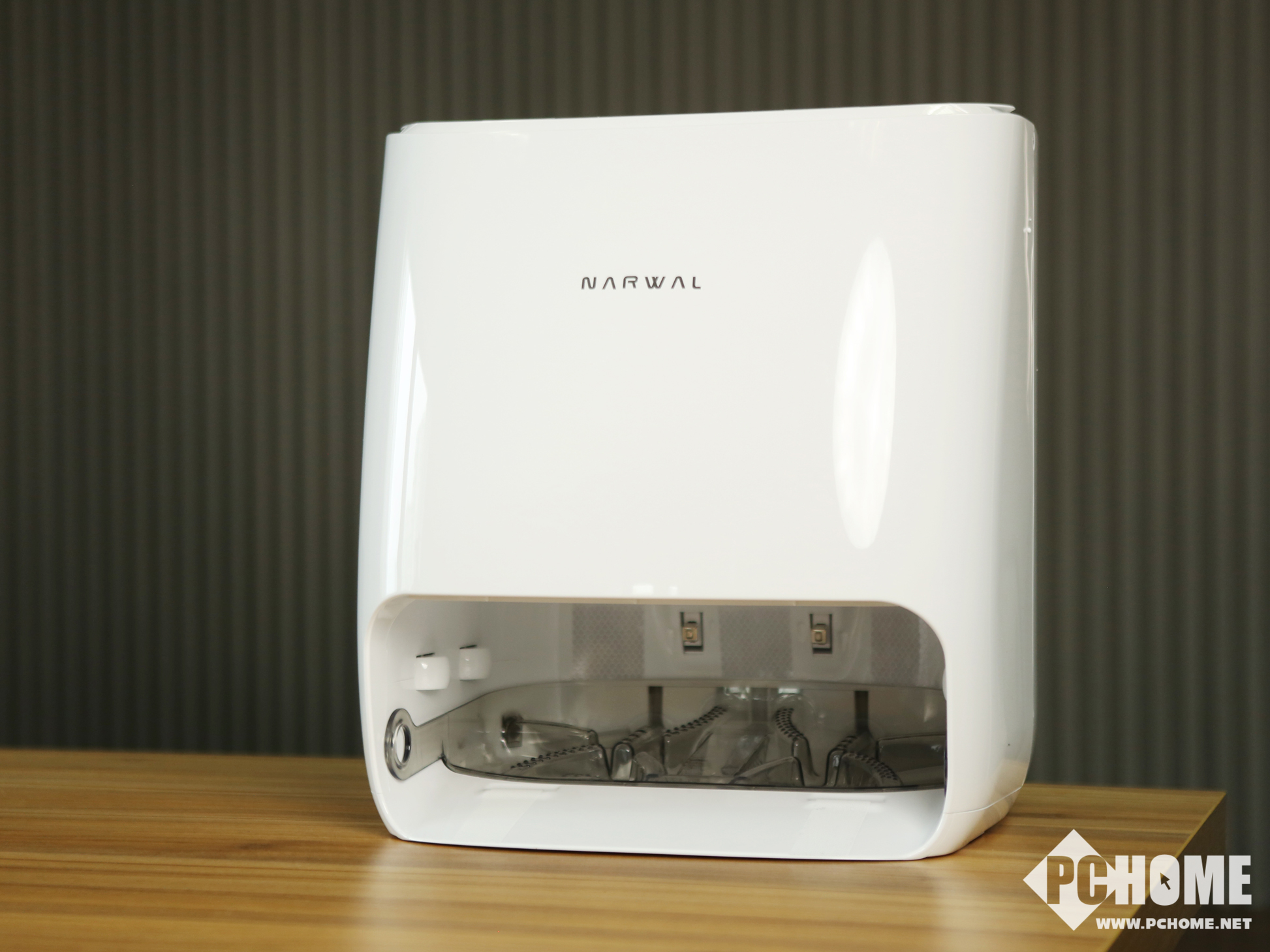 这个硕大的主机就是「小白鲸」拖地机器人的清洁基站,底部的开口就是「小白鲸」拖地机器人每次回充以及进行清洁的部分。
