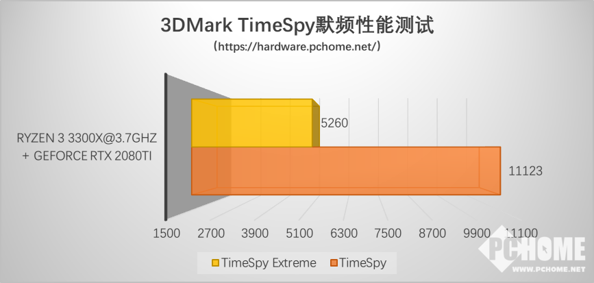我们使用新版3DMark软件来进行图形性能的测试。在及DX12的TimeSpy与TimeSpye Extreme测试,在系统默认设置下,Time Spy的得分为11123,Time Spy Extreme的得分为5260,均是旗舰级的性能表现。