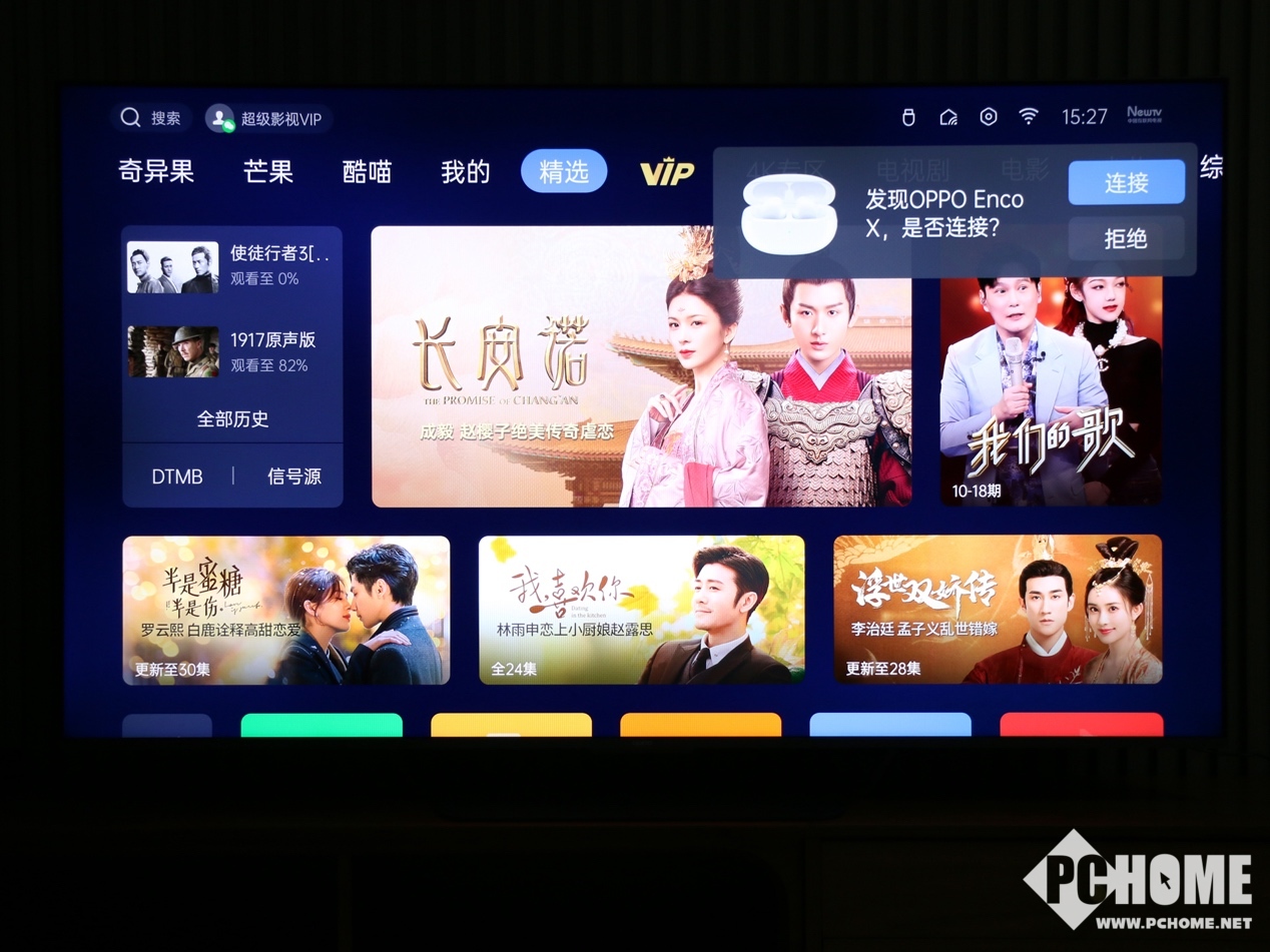 手机之后就是耳机,OPPO Enco系列的W51以及X两款耳机产品在开盖后都可以快速被OPPO智能电视S1发现,并且在画面右上角位置弹出配对窗口。