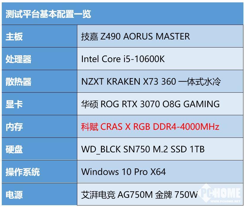科赋CRAS X RGB DDR4-4000MHz内存@4500MHz