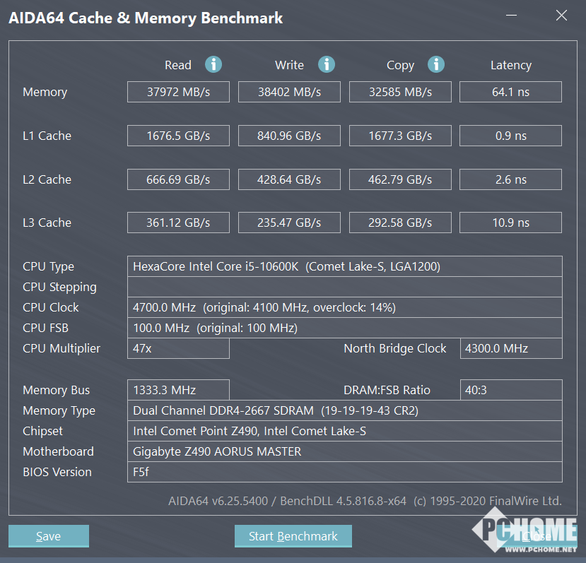 AIDA64 Cache & Memory Benchmark测试@4000MHz