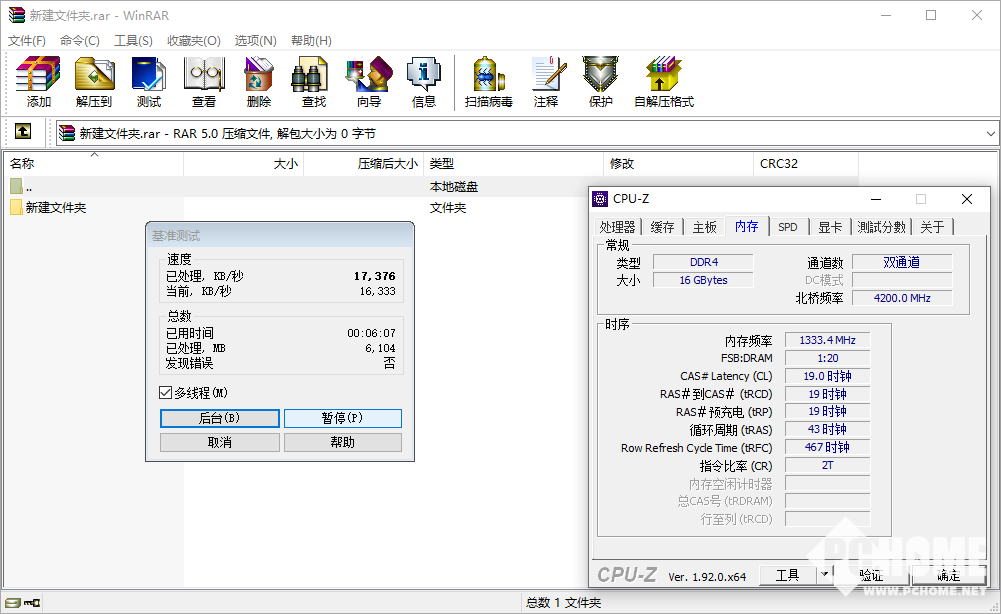 WinRAR是一款常用的文件压缩、解压工具,其内置的基准性能测试与平台的CPU、内存和硬盘都有关系,当其它因素不变时,内存就是影响压缩文件速率的主要因素。因此我们也可以利用这一软件来评估内存的性能。在WinRAR 5.80 X64版本的性能测试中,科赋CRAS X RGB DDR4-4000MHz内存在2666MHz的运行频率下,测得处理速度为17376 KB/s,是一个值得肯定的成绩。