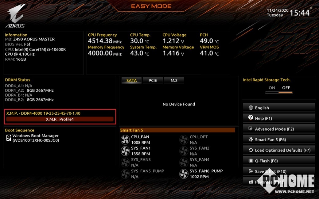 技嘉Z490主板BIOS内存选取XMP配置文件