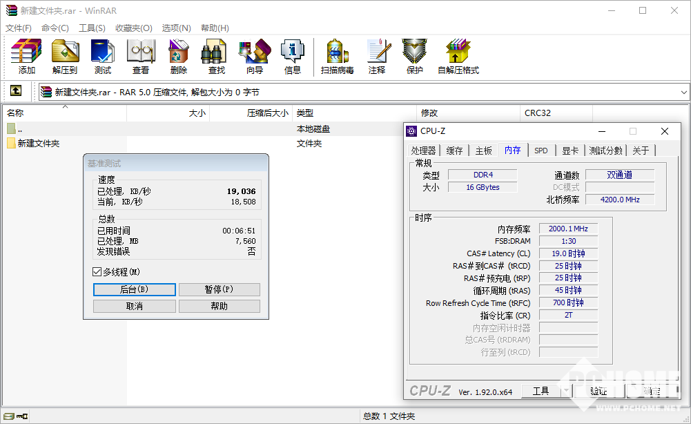 首先,在4000MHz的频率下,在WinRAR 5.80 X64版本的基准性能测试中,科赋CRAS X RGB DDR4-4000MHz的处理速度为提升到了19036 KB/s,相比默认2666MHz频率下的17376 KB/s,提升了10%左右,提升还是非常明显的。