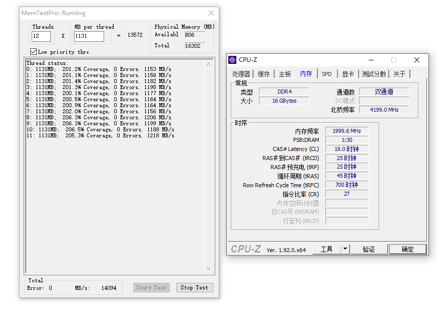 最后,对于高频内存来说,稳定性是大家最关心的。我们使用Mem Test Pro来进行测试。我们使用12个线程同时进行,运行覆盖率至200%,结果完全正常,没有发现错误提示,说明这款内存的品质及稳定性是值得信赖的。